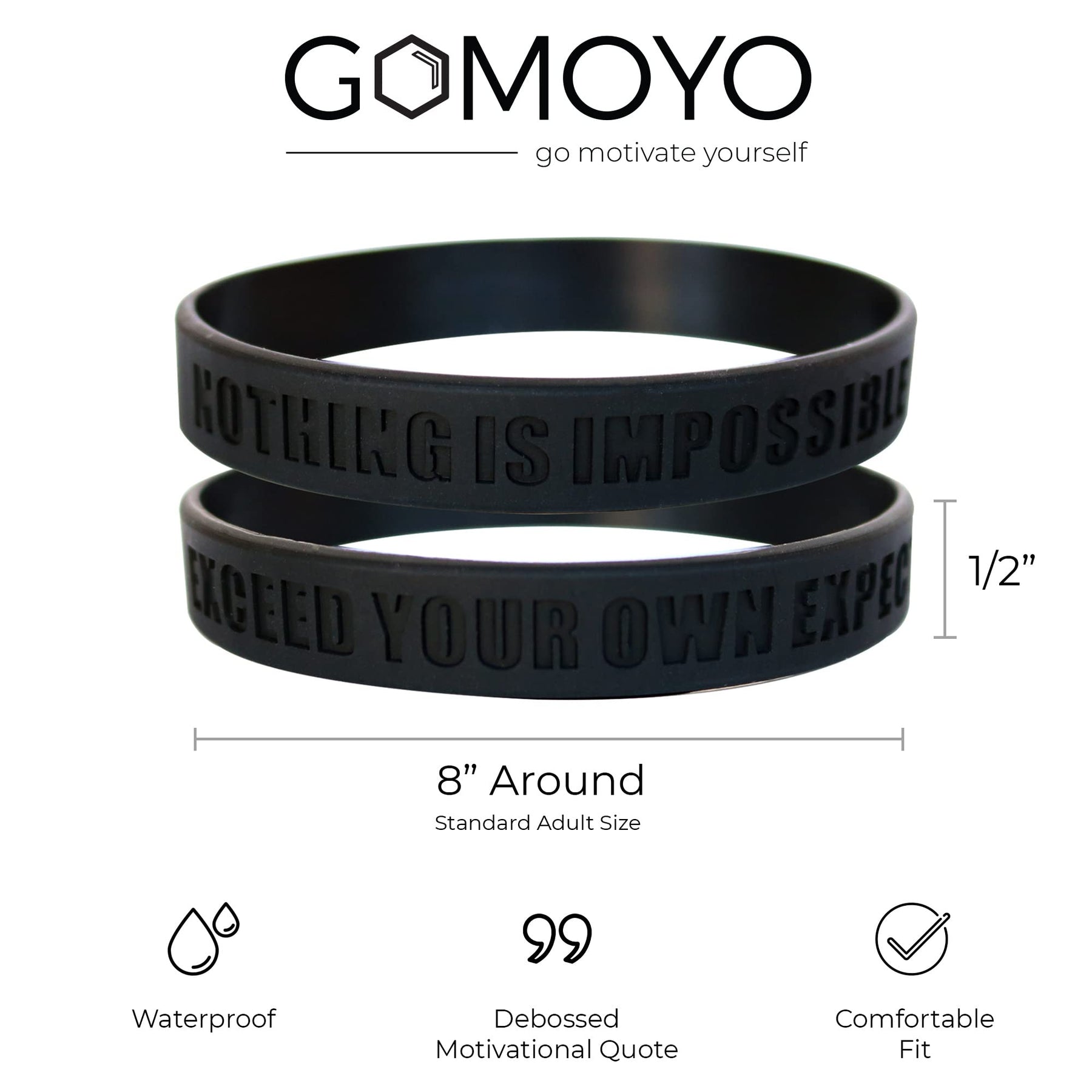 - Original Wristbands – Nothing is Impossible, Exceed Your Own Expectations Motivational Silicone Wristbands, Rubberband Bracelets for Fitness, Workouts, Exercise, Basketball (Black & White 4 Pack (2 Each)) by GOMOYO