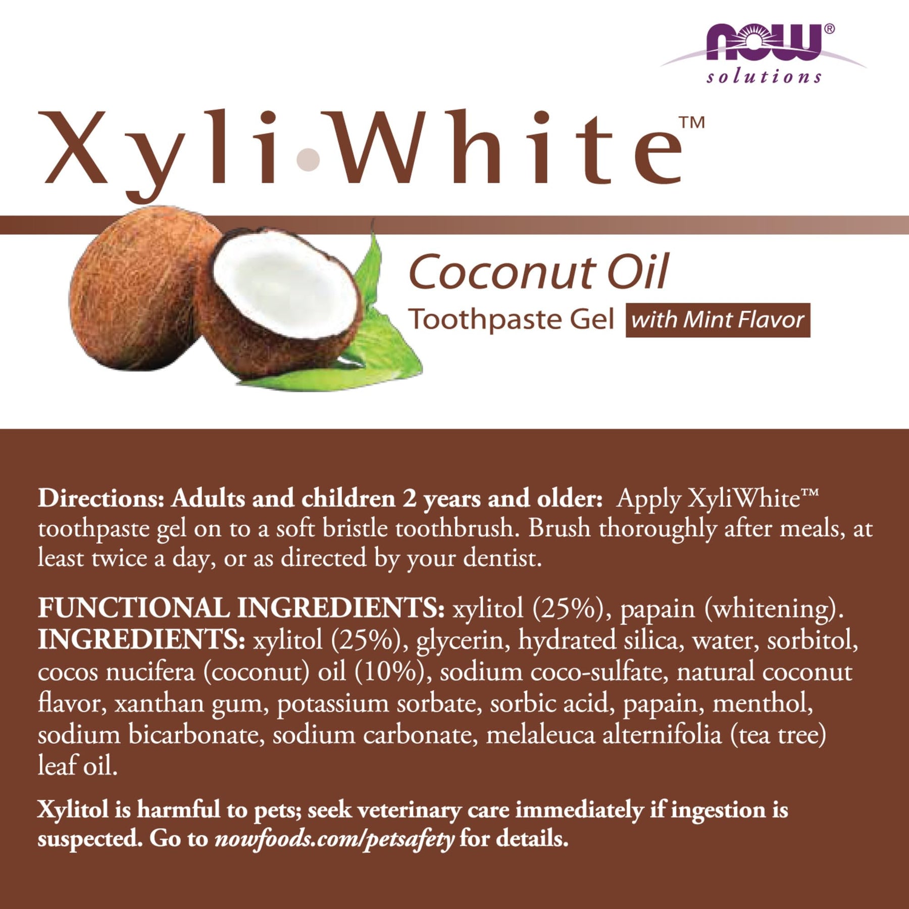 - Original Toothpastes – , Solutions, XyliWhite, Toothpaste Gel, Coconut Oil, Mint Flavor, 6.4 oz (181 g) by Now Foods
