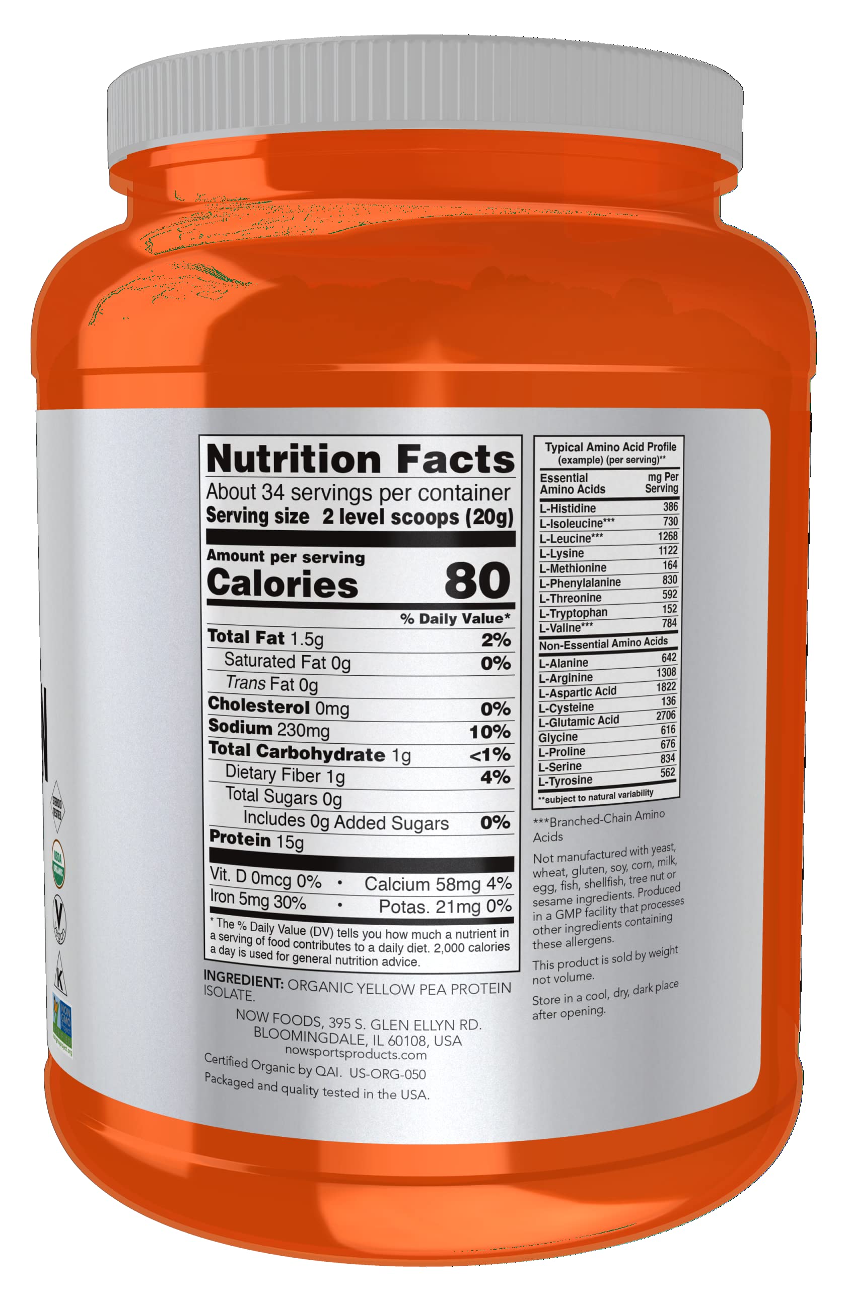 - Original Pea Proteins – ORGANIC PEA PROTEIN (15g Protein, NO Soy, NO Dairy) - 1.5 lbs (680g, Unflavored) by Now Foods