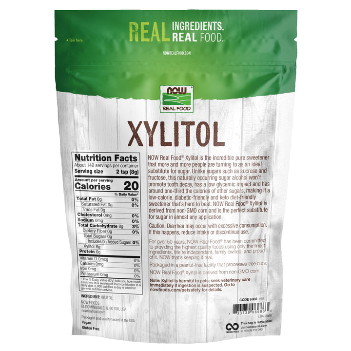 | directions | NOW Real Food® Xylitol is derived from non-GMO corn and is the perfect substitute for sugar in almost any application. |
