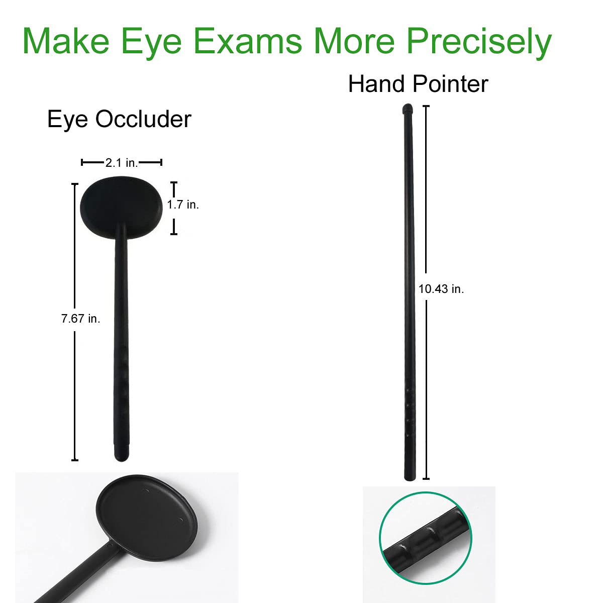 - Eye Occluder and Hand Pointer: The plastic lightweight eye occluder features an occluder that is shaped to cover either eye during an eye examination. They help users to test vision more precisely