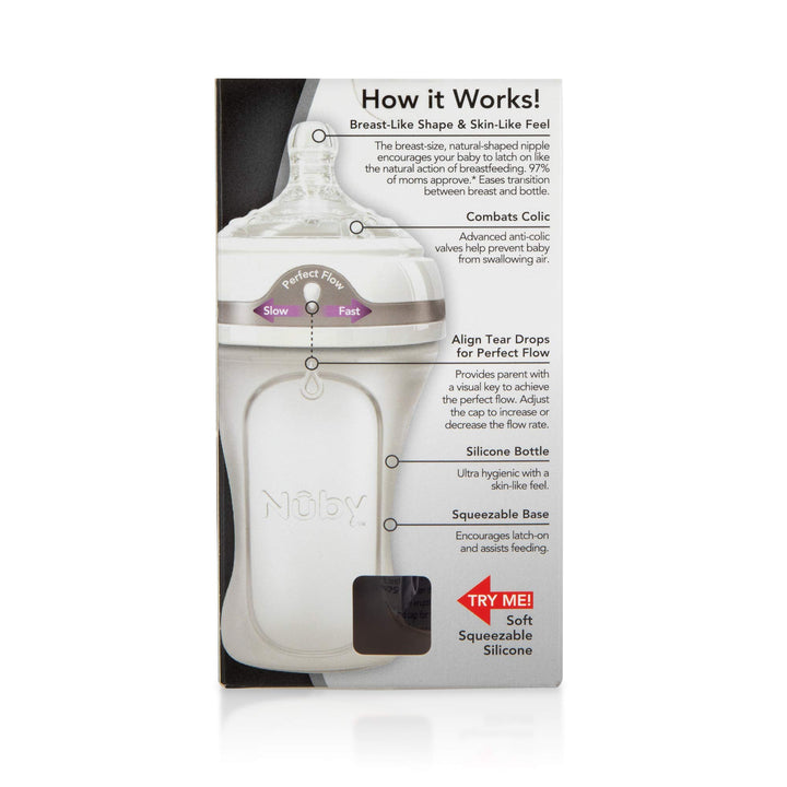 - Soft Flex nipple mimics mom’s natural breast shape. It’s designed to move and flex like a real nipple, encouraging latch on and making the transition between breastfeeding and bottle feeding easier on mom and baby.