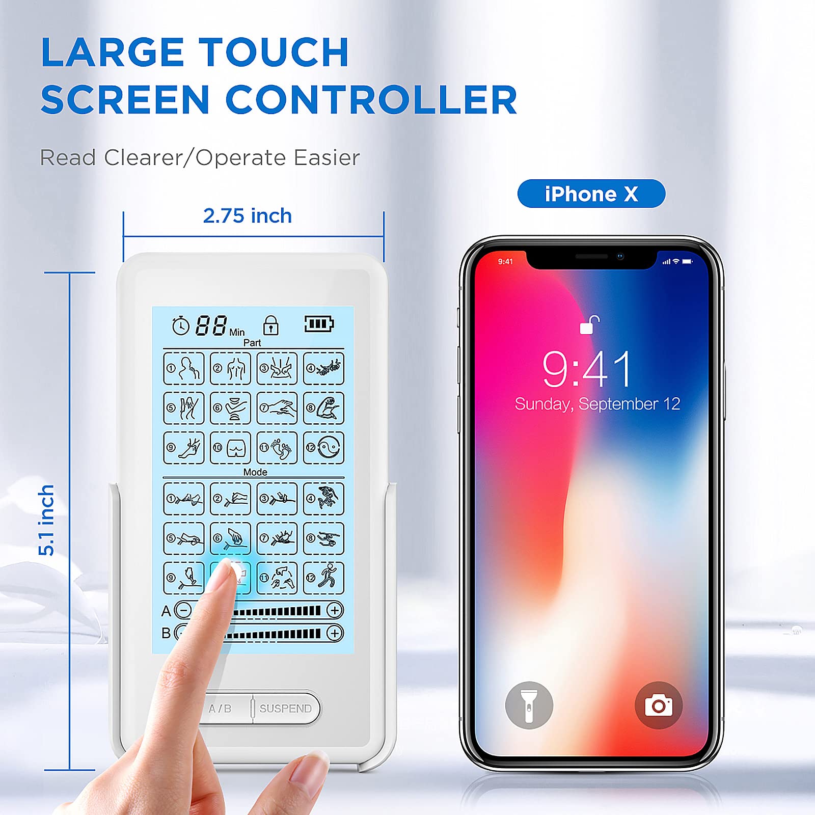 - Original Muscle Stimulators & Accessories – Dual Channel TENS Unit Muscle Stimulator for Pain Relief Therapy with 16 Pads & 24 Modes, Touchscreen TENS EMS Unit with Back Clip, Easy to Operate for Elder by NURSAL