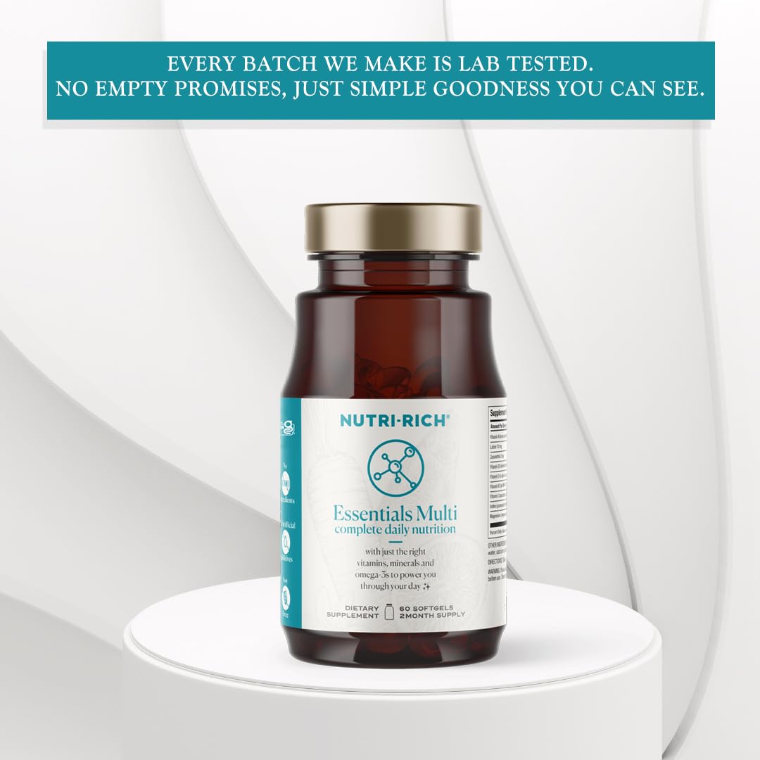- Original Multivitamins – Essentials Multi, Multivitamin for Adults Softgel with Iron Nutritional Support with Lutein, Energy, K2 for Bone Health, Vitamin D3, Minerals, and Sustainable Omega-3 EPA + DHA (60 Count) by Nutri-Rich