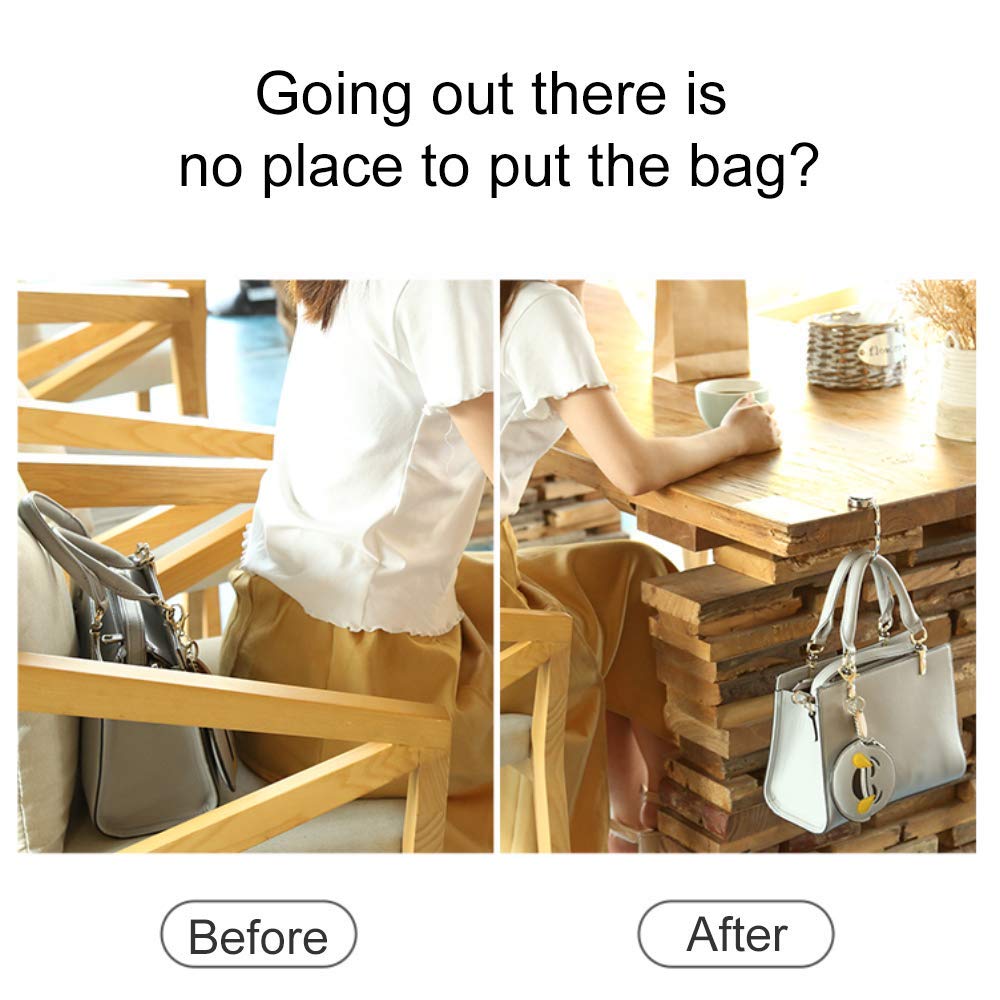 - [Clean and Safe] Keeps your bag is clean and you don't need to put the bag on the dirty floor or in a crowded chair, you can just hang your purse right next to you.