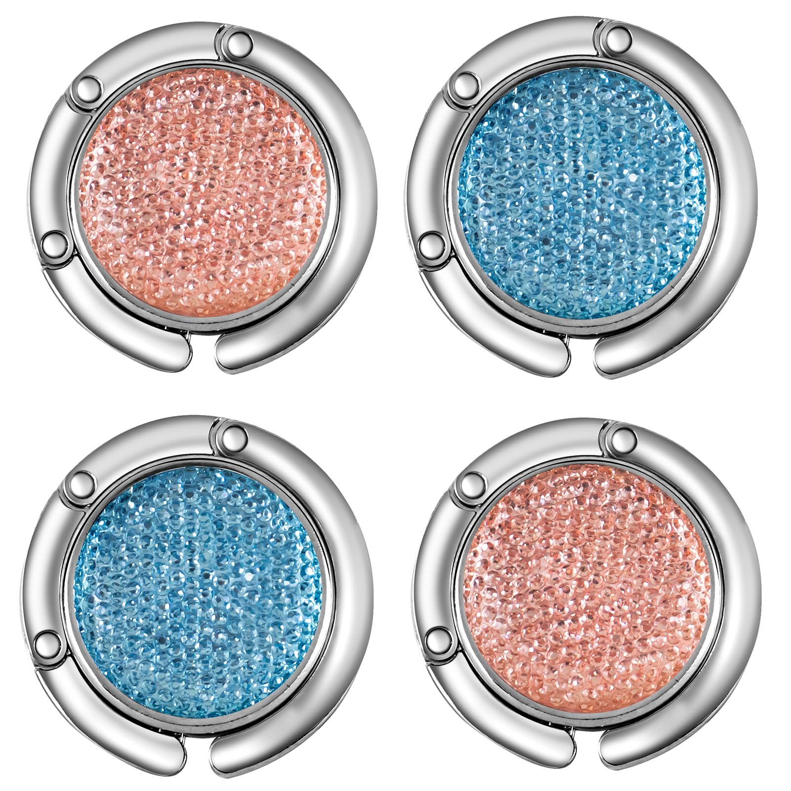 - [Foldable Purse Hook] Each round hook is made of aluminum alloy with color diamond series, which looks more beautiful and refined.