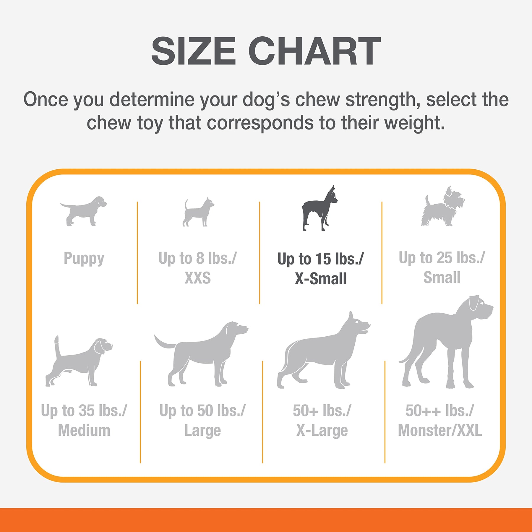 - FOR EXTRA-SMALL DOGS - Size Petite chew toy is intended for dogs up to 15 pounds