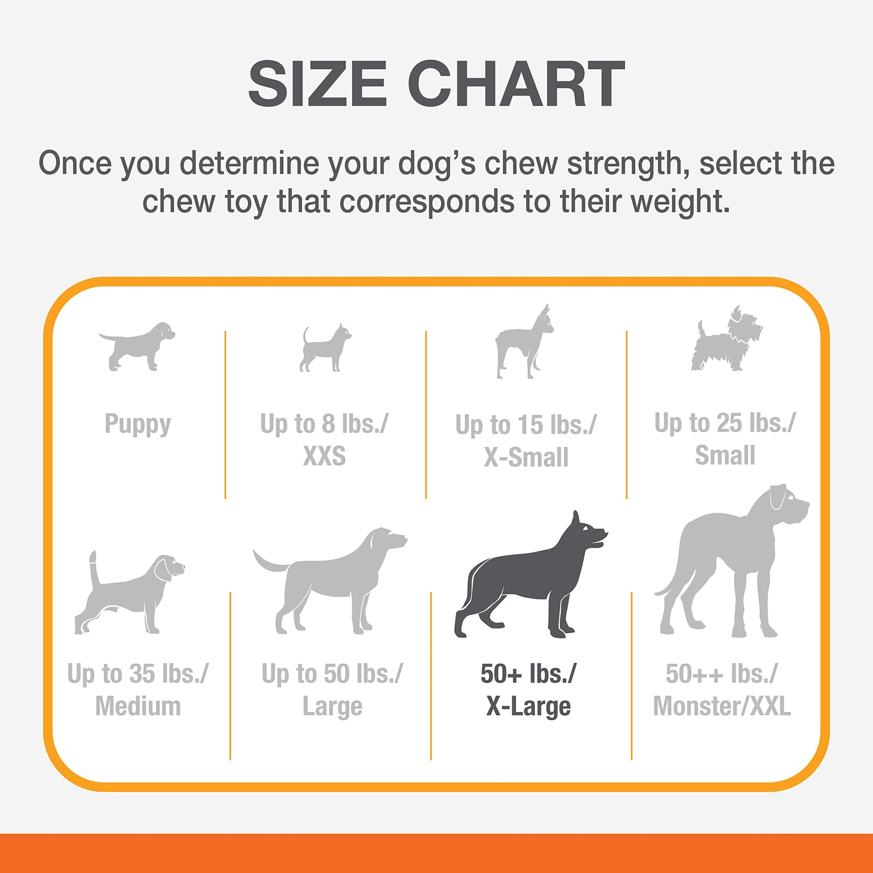 - FOR X-LARGE DOGS - Size X-Large chew toy is intended for dogs 50 lbs. and over