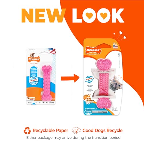 - Original Chew Toys – Textured Teething Bone Chew Toy for Puppies, Puppy Chewing Toys, Pink, Chicken Flavor, X-Small - Up to 15 Ibs, 1 Count by Nylabone