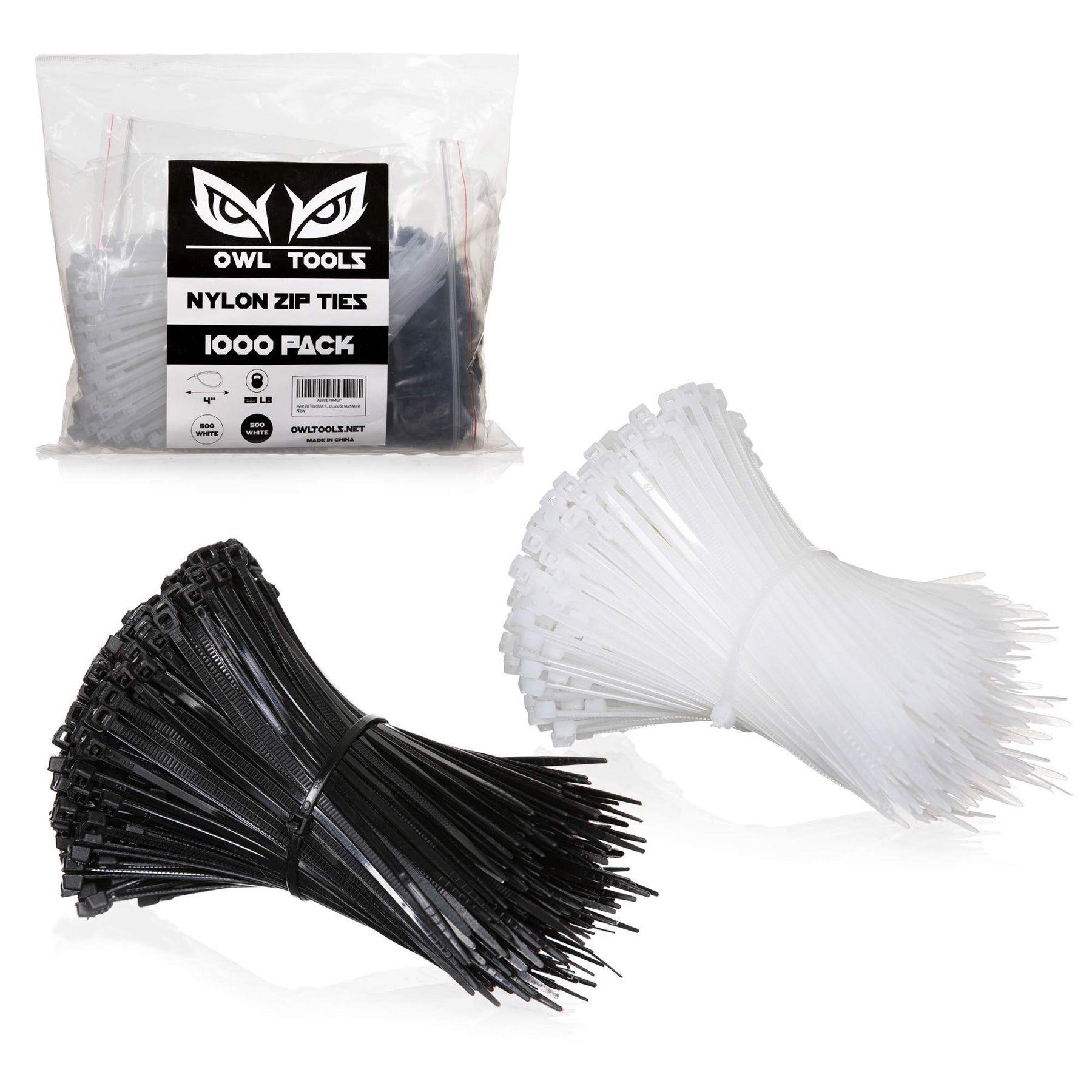- Original Cable Ties – Nylon Zip Ties (BULK PACK OF 1000) 4 Inch Cable Ties in Black and White - Small Mini Sized 25lb Strength Tie Wraps - Perfect for Tying Cables, Wires, Organization, and So Much More! by Owl Tools