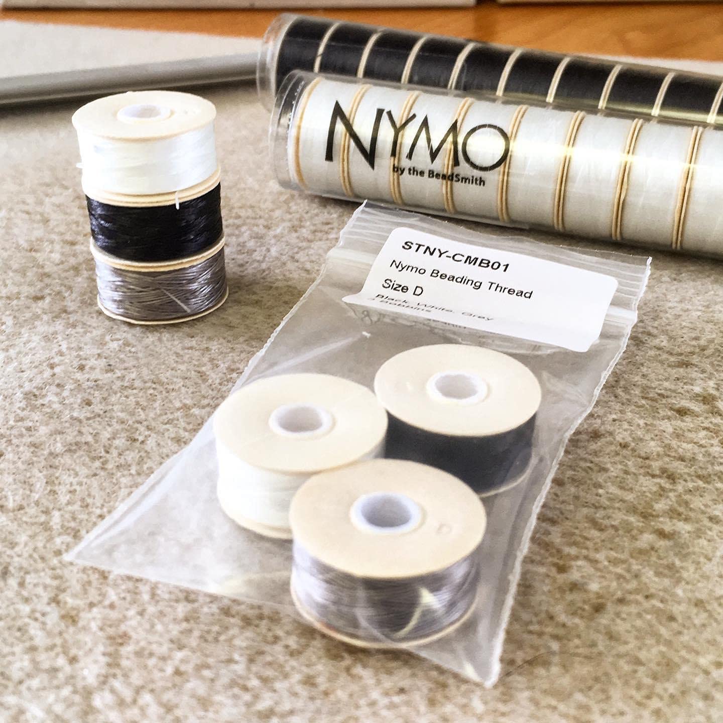- Original Beading Cords & Threads – Nylon Beading Thread Size D for Delica Beads, 64 Yards per Bobbin, White, Grey & Black. (Multicolor) by Nymo