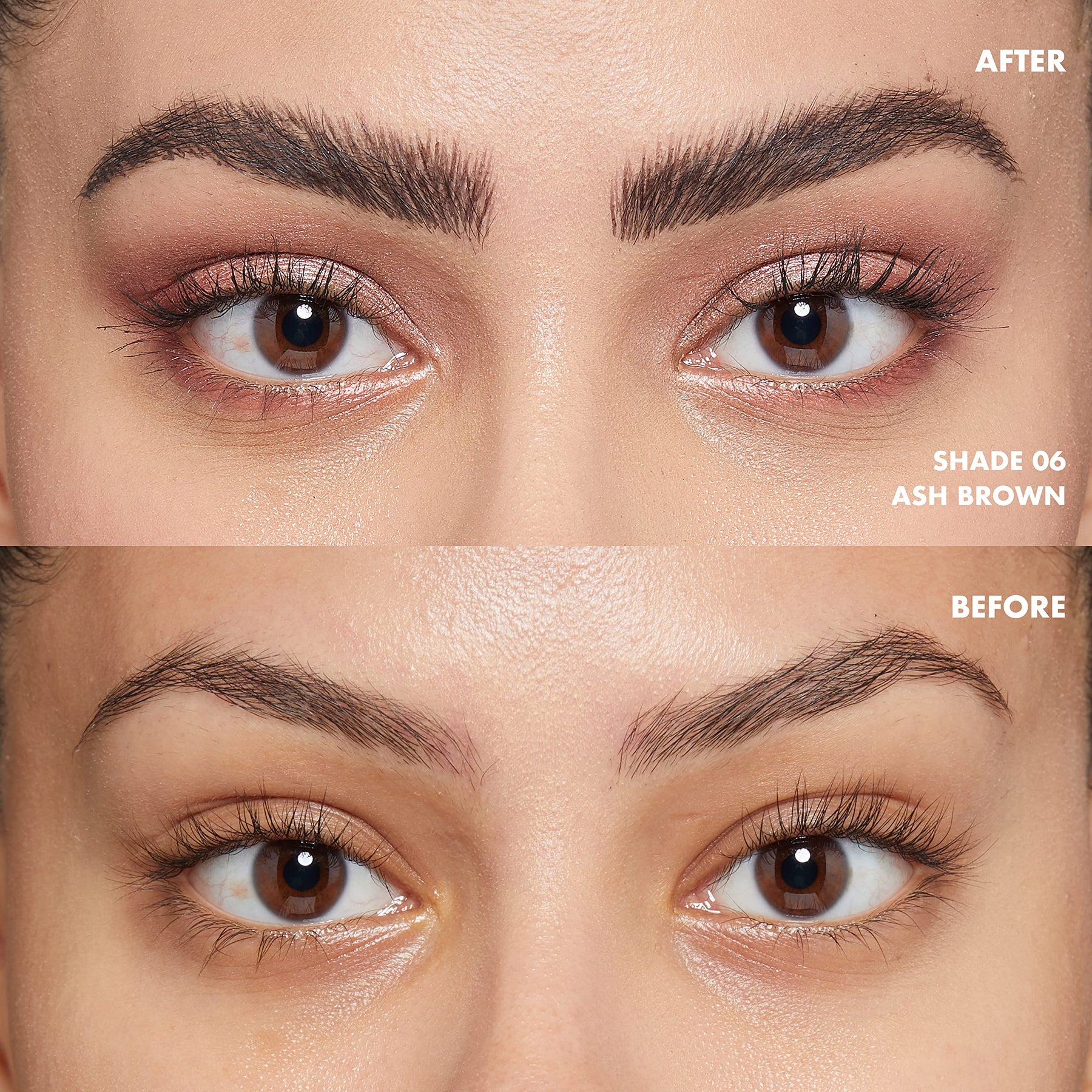 directions | Shake pen at a downward angle. Fill in sparse areas with precise hair-like strokes and add definition to other brow areas. Pro-Tip: To create a lifted look, flick applicator in an upward, vertical motion. Press harder for thicker hair-like strokes and lighter for thinner more natural looking hair-like strokes. |