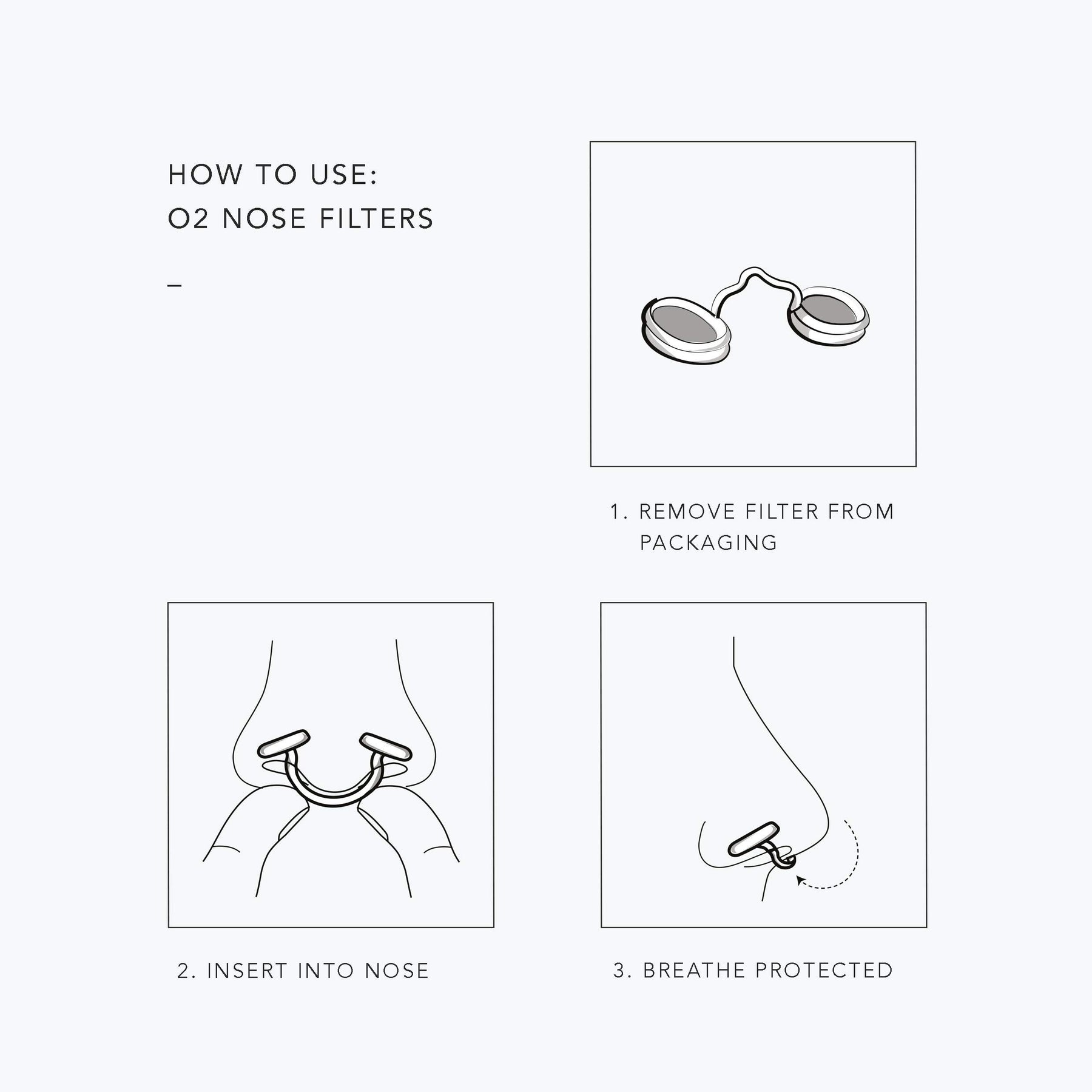 - BREATHE PROTECTED WHEREVER YOU GO: O2 Nose Filters prevent the inhalation of airborne pollution, allergens, bacteria, pathogens, and more