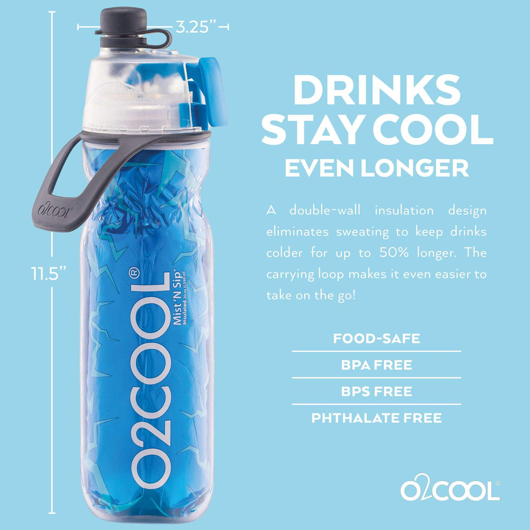 - Original Sports Water Bottles – Arctic Squeeze Mist 'N Sip Insulated Bottle w/Silicone Spout Cover And Locking Misting Function - 20 oz, Crackle Blue by O2COOL