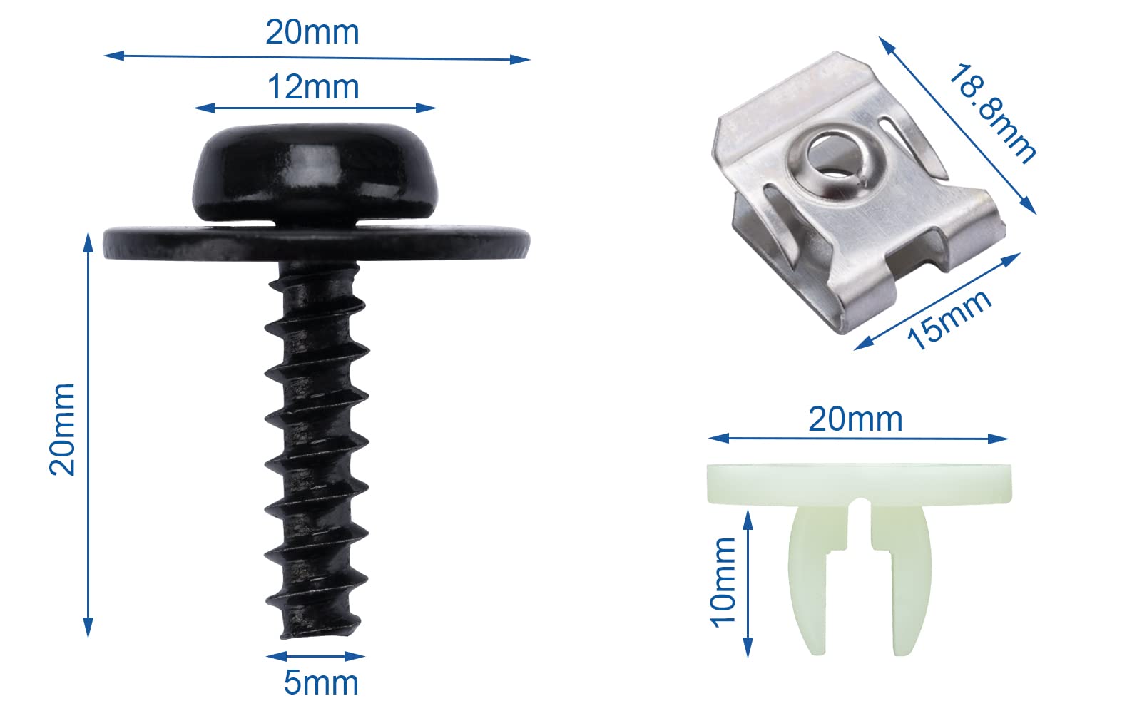 - 12PCS T30 Torx Pan Head Tapping Screws. Black Finish,M5-2.2 x20mm ,Washer Diameter: 20mm, Replacement for Ford W702413-S450B, W702413-S307