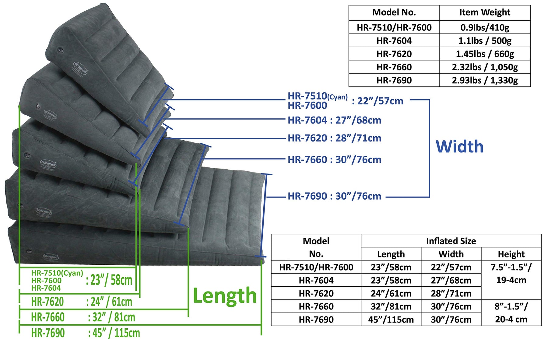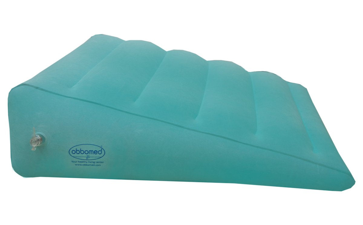 - Original Wedges & Body Positioners – ObboMed HR-7510 Inflatable Portable Bed Wedge Pillow with Velour Surface for Sleeping, Travel, Trip Vacation, Horizontal Indention Prevent Sliding, 23” x 22” x(7.5”~1.5”), Cyan by OBBO MED