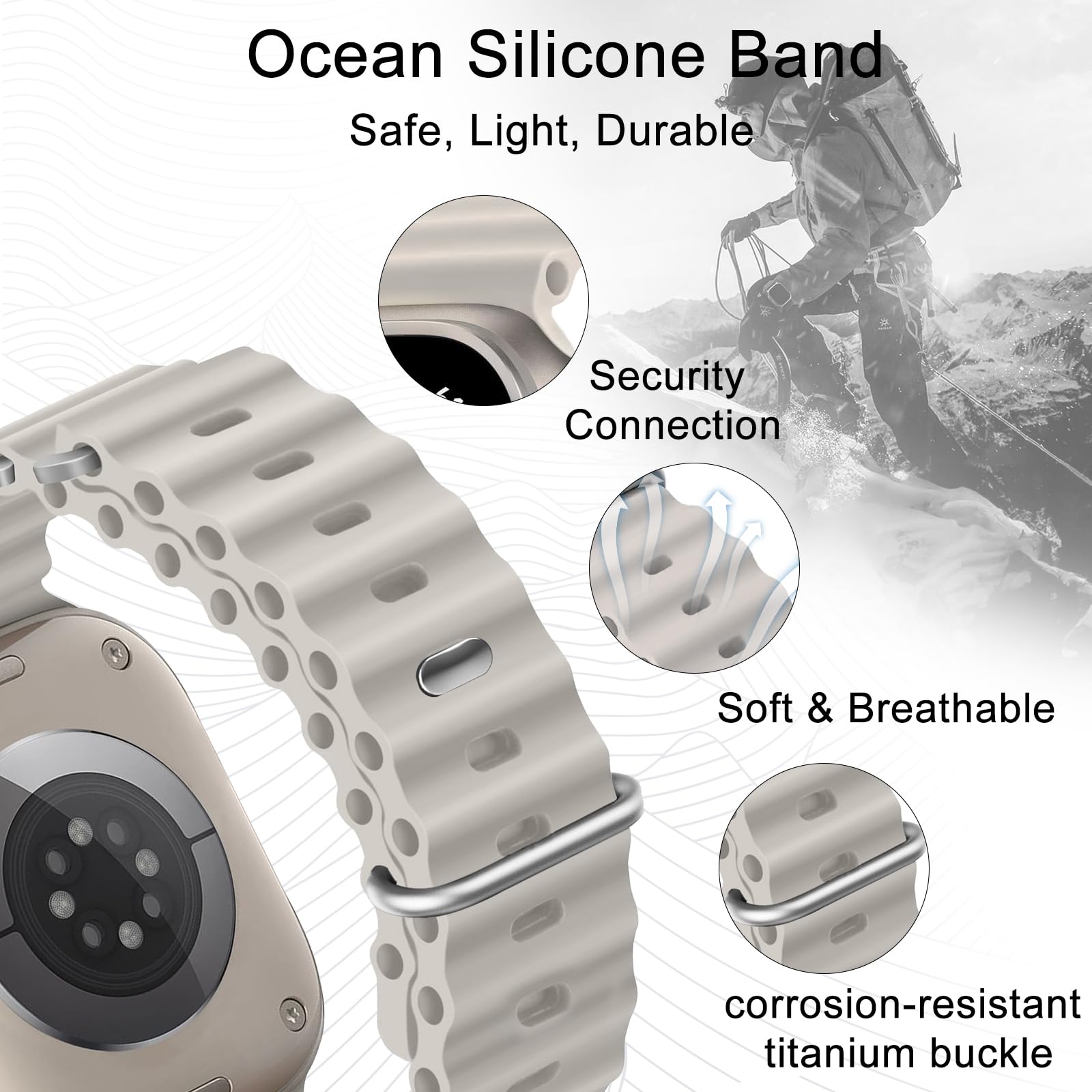3.Durable Ocean Silicone wristbands for apple watch ultra/ultra 2 band 49mm comes with watch lugs on both ends, which locks onto watch interface precisely and securely.
