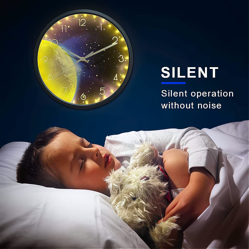 - Original Wall Clocks – Night Light Wall Clock for Bedroom, 12 Inch Silent Battery-Operated Wall Clocks for Home, Living Room,Kitchen, Large Digital DisplayGlow in The Dark Kids Room Décor-Earth by OCEST
