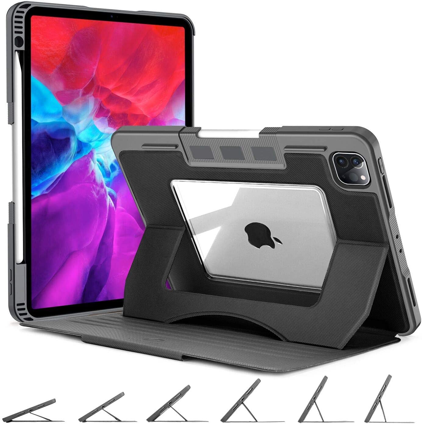 The magnetic kickstand is adjustable to 6 Secure Angles. You will always have the perfect stable angle for any situation, whether you are on a plane, on the couch or even in bed. 2. Magnetic Kickstand The Magnetic Kickstand is also strong enough to hold your iPad up on the fridge or most other metal surfaces. 3. Transparent Back The clear back cover allows you to see the LOGO, while protects your device against fingerprints and scratches. 4.Auto Sleep/Wake feature Support automatic wake-up function of the iPad Pro 11 inch; Support iPad Pencil Wireless Charging. 5. Fully Body Protective Shockproof hard back case to protect your tablet from shocks and drops. Padded front cover and hard plastic back offer enhanced protection, at front, back, and all CORNERS. NOTE: FIND YOUR IPAD MODEL # ON THE BACK OF YOUR IPAD ( NOT IN SETTINGS ) COMPATIBLE ONLY WITH: iPad Pro 11 inch 3rd Generation 2021 Release (Model: A2377 A2459 A2301 A2460), iPad Pro 11 inch 2nd Generation 2020 Release (Model: A2228/A2068/A2230/A2231), iPad Pro 11 inch 1st Generation 2018 Release (Model:A1980/A2013/A1934/A1979).