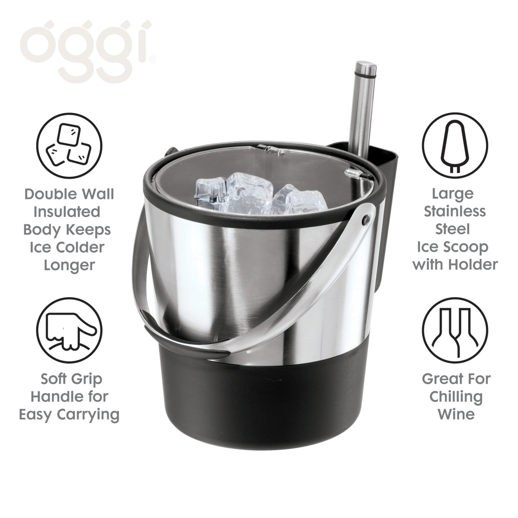 - Original Ice Buckets – Insulated Ice Bucket, 4 Quart / 3.8 L, Stainless Steel, Black. by Oggi