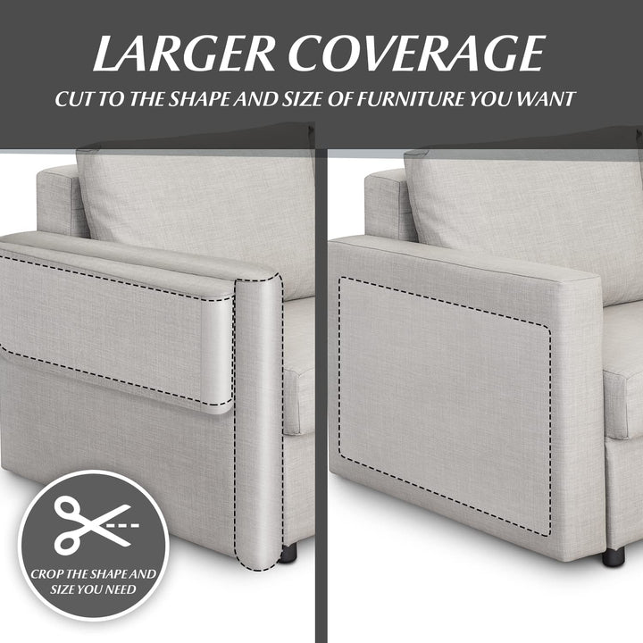 - LARGE SIZE AND MULTIFUNCTIONAL Our Cat Furniture Protector Tape is EXTRA-LARGE 17.8 X 12 inch sheets of double sided sticky tape and not tiresome small size. It is very useful and easy to use like using regular 2-sided tape DIY application. If the sheet is too large for your chosen project simply cut to size before removing the backing. Thinner and transparent, you can use them anywhere such as Couches,Chair, Wall, Fabric sofas, leather furniture, tables, counters, doorways, screen porches etc.