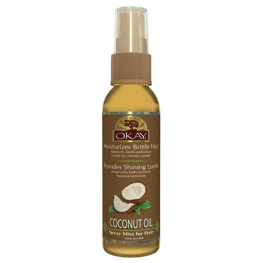 - Original Hair Oils – OKAY, Coconut Oil Spray Mist, For All Skin & Hair Types & Textures, Revive Damaged Brittle Hair, With Natural UV Protectants, Free of Parabens, 2 oz by Okay
