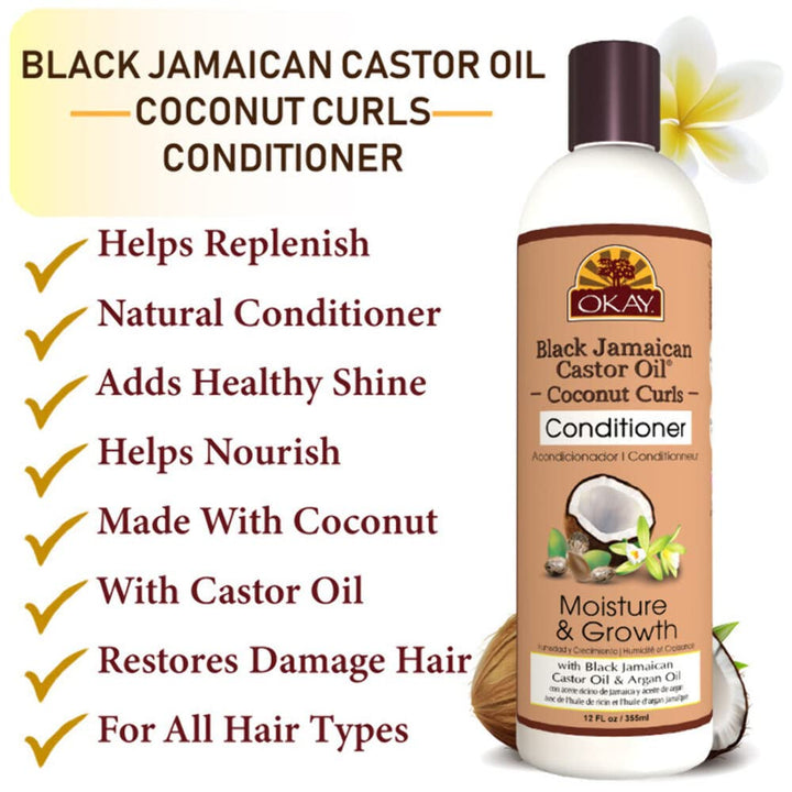 - Original Conditioners – OKAY OKAY-BJCOCOC12 12 oz 355 ml Black Jamaican Castor Oil Coconut Curls Conditioner Moisture Growth by Okay