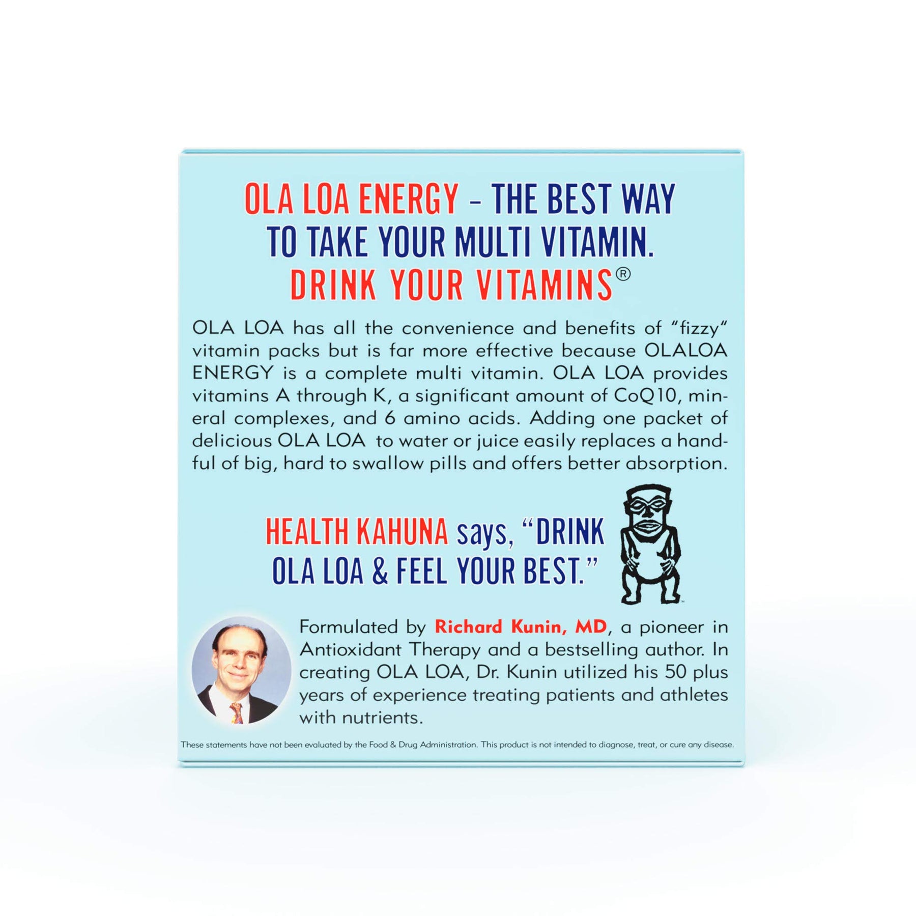 Get MORE with ENERGY: Ola Loa ENERGY includes more active nutrients than other competing brands. It is recommended as a once a day multi-vitamin, great for natural energy production and antioxidant protection.