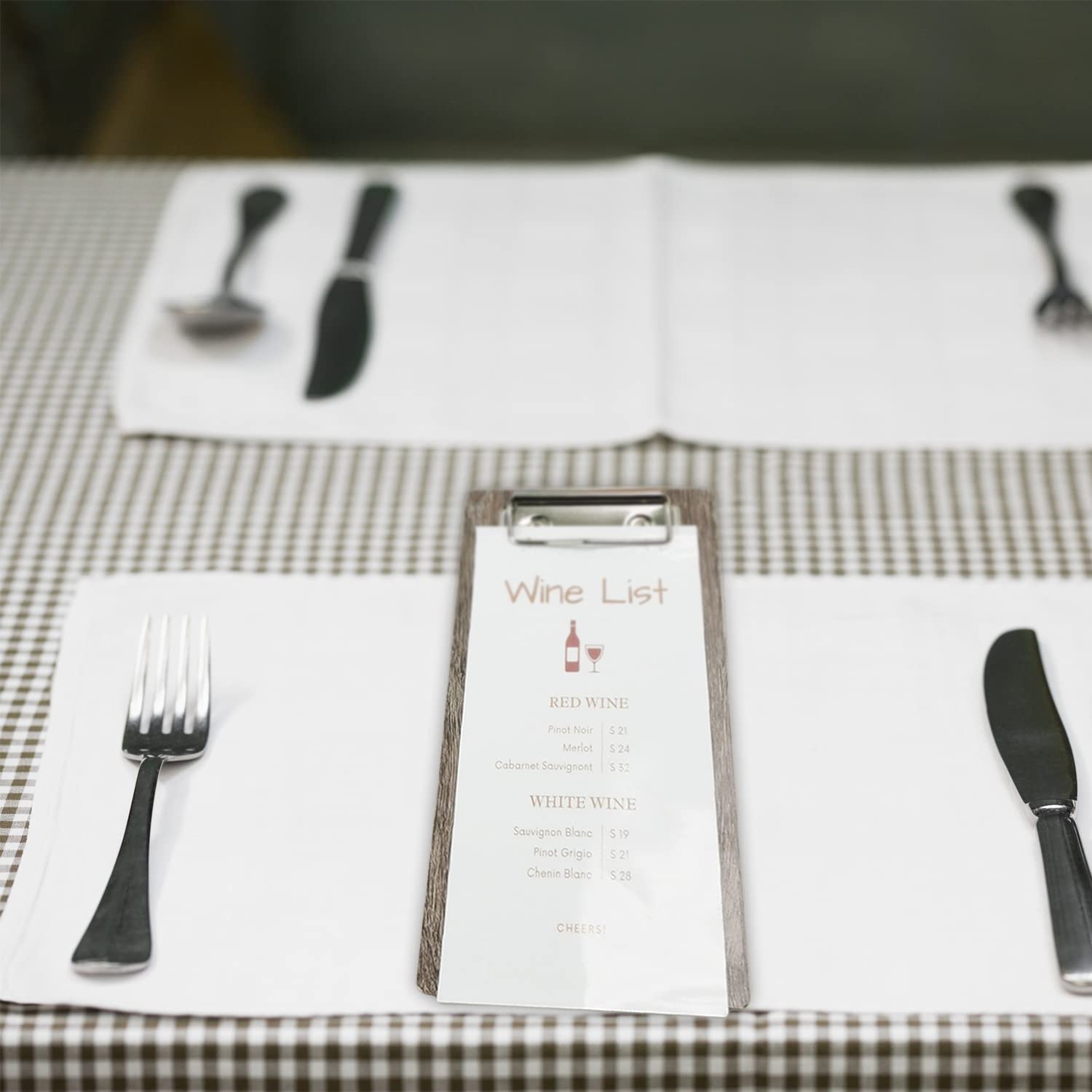 DURABLE METAL CLIP - It makes it easy for your staff to secure menus, wine lists, and daily specials to the menu holder.