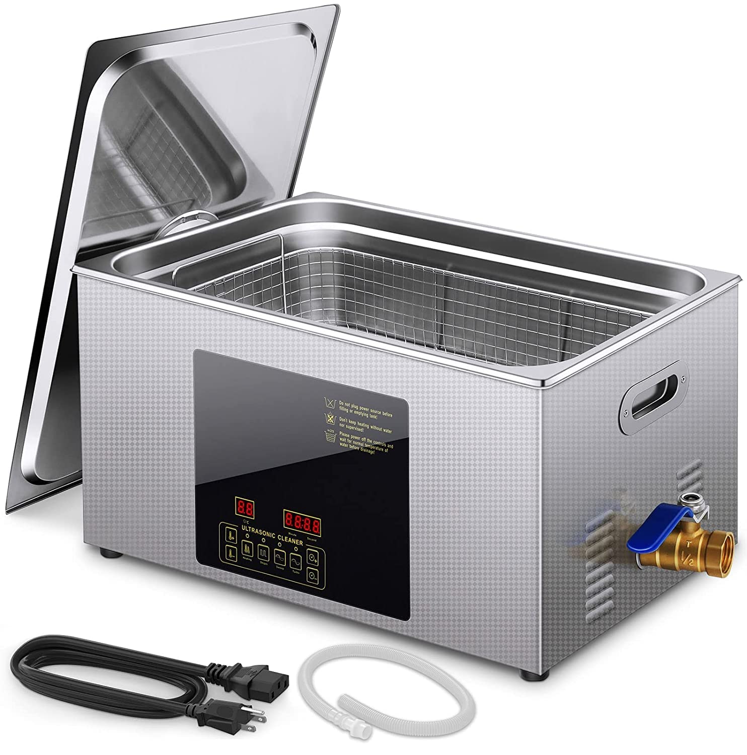 - Digital Control PanelProfessional ultrasonic cleaner with digital control display.Heating temperature: 0-80 ° C/176 (adjustable).Time setting range:0-30min(adjustable).