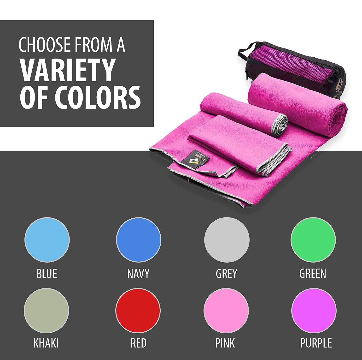 - Original Towels – Quick Dry Towel - 3 Size Pack of Lightweight Microfiber Travel Towels w/Bag - Fast Drying Towel Set for Camping, Beach, Gym, Backpacking, Sports, Yoga & Swim Use (GREY) by OlimpiaFit