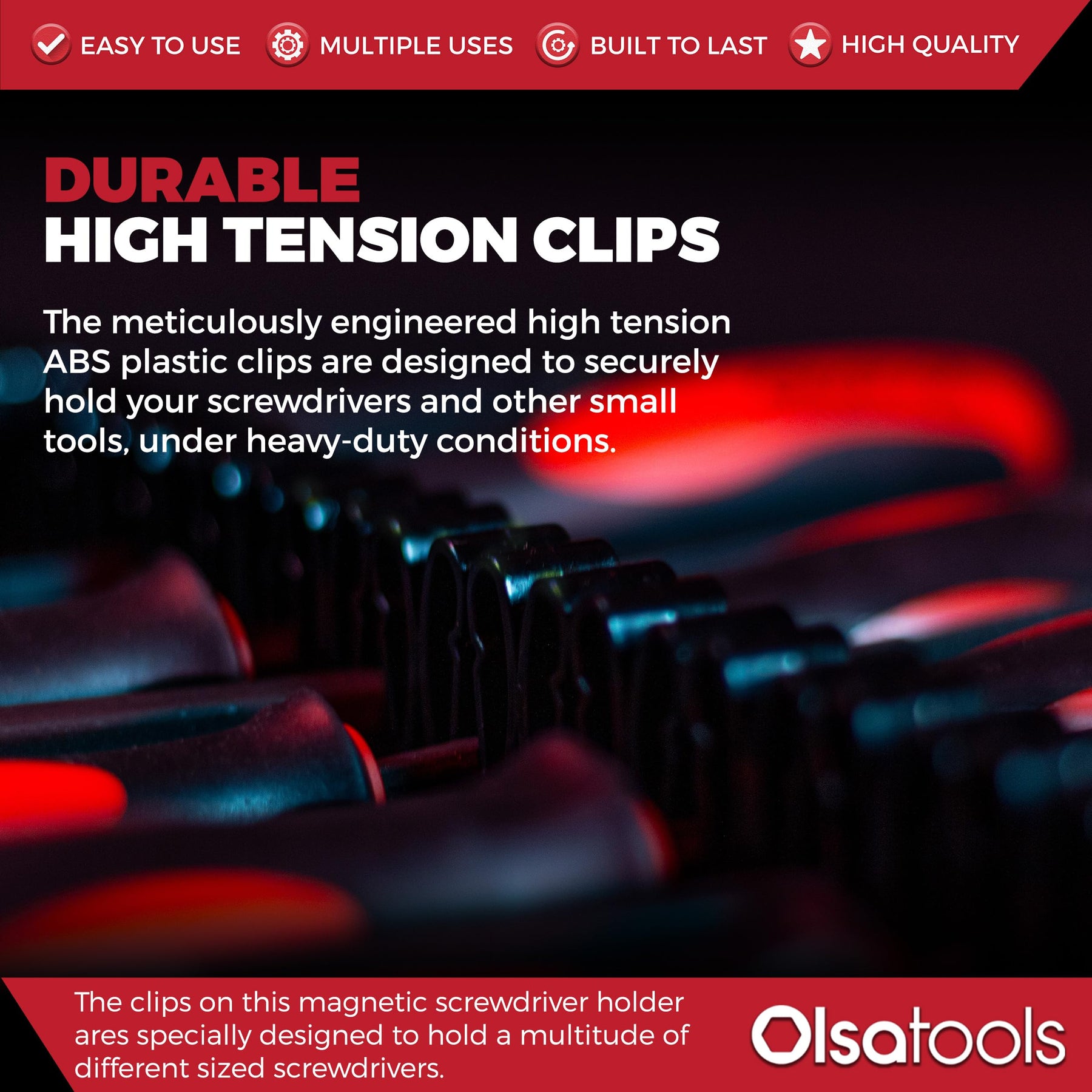 - SO EASY TO USE - It's a no-brainer with the Olsa Tools screwdriver organizer. Simply slap it on almost any steel surface (vertically or horizontally) and clip your screwdrivers or other small tool right in.