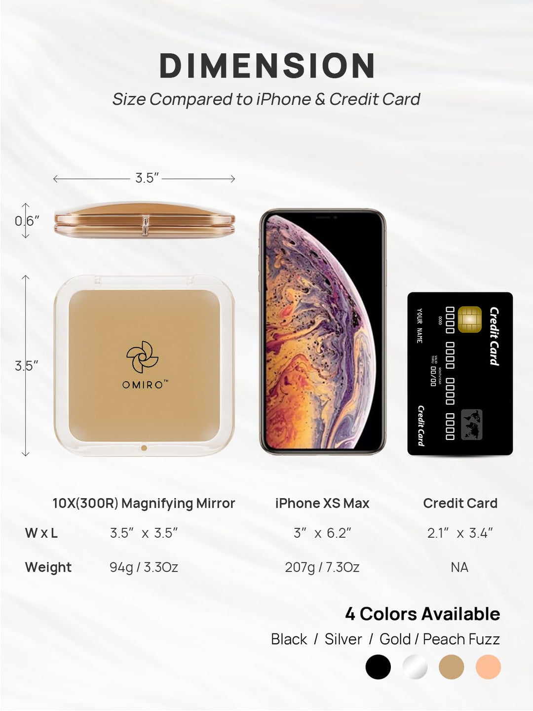 - Original Compact & Travel Mirrors – Folding Compact Mirror, 1X/10X(300R) Magnification 3½” Pocket Size Square Hand Mirror for Travel Makeup (Gold) by OMIRO