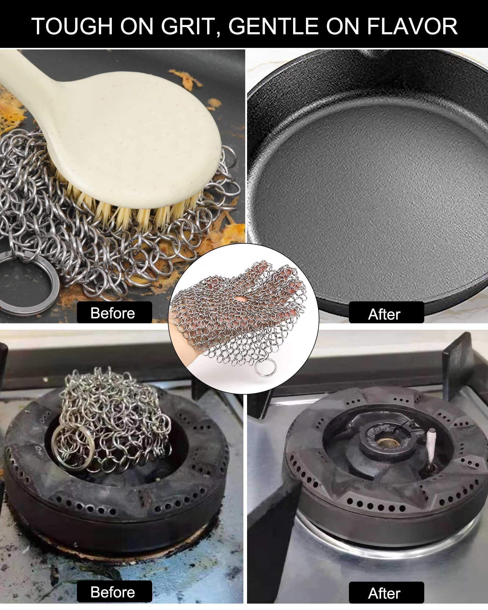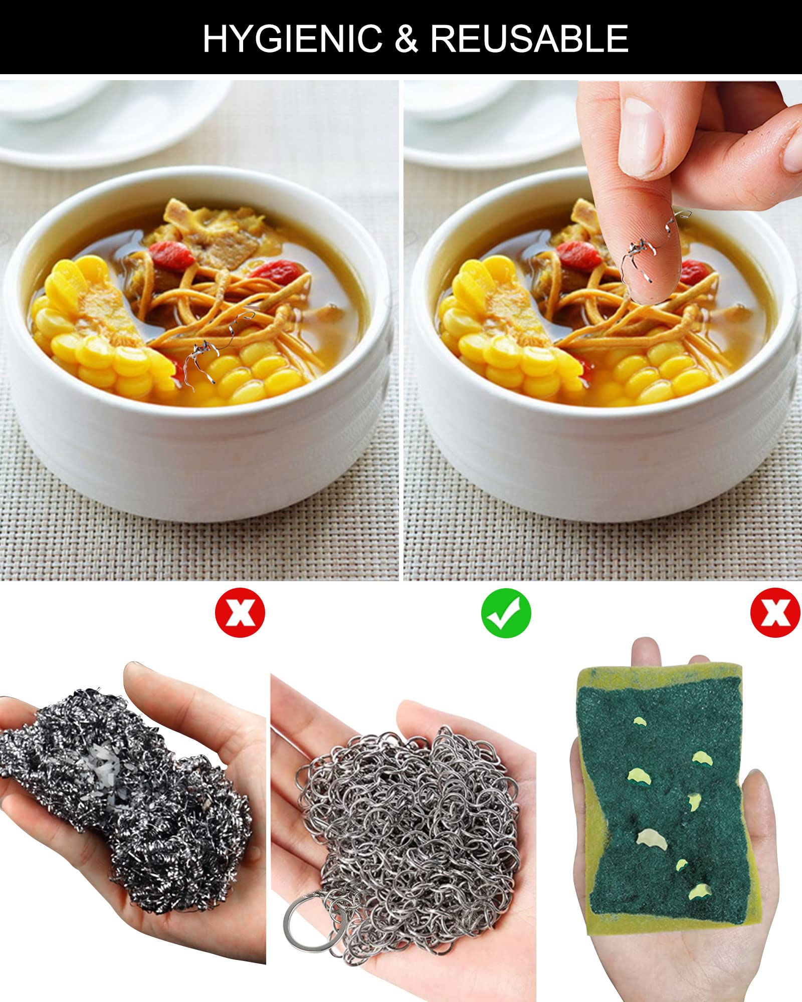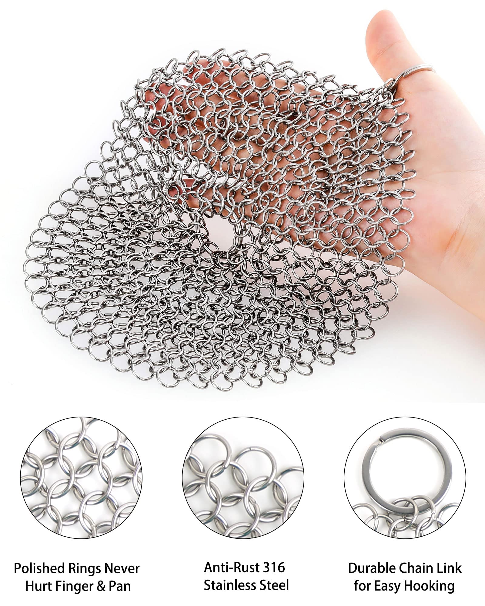- Original Scrub Pads – Cast Iron Skillet Cleaner Chainmail,Premium Stainless Steel Chain Maille Scrubber for Cast Iron Pans,Stainless Steel,Glassware (7 Inch Round) by ONEEKK