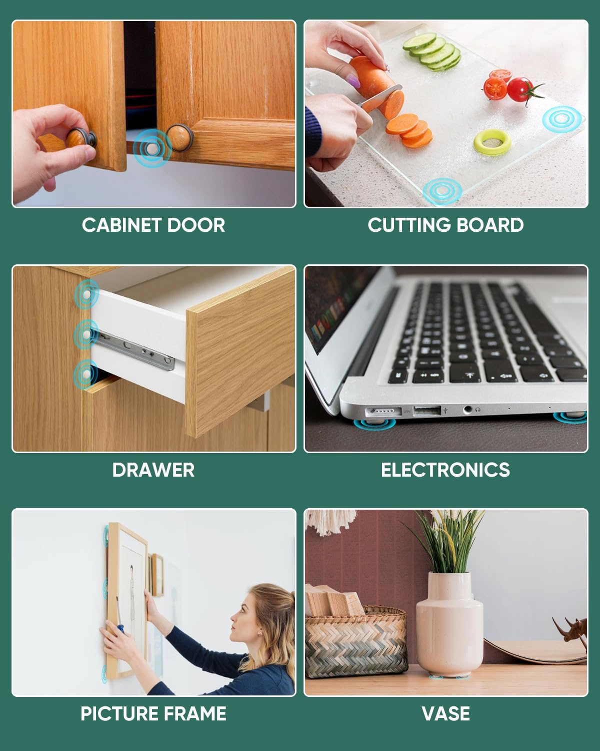 - Original Furniture Pads – 304pcs Cabinet Door Bumpers Clear, Adhesive Rubber Feet Silicone, Sound Dampening Door Slam Stopper Non Slip Furniture Pads Wall Protector for Cutting Board, Door, Drawers, Glass Cabinet by ONUEMP
