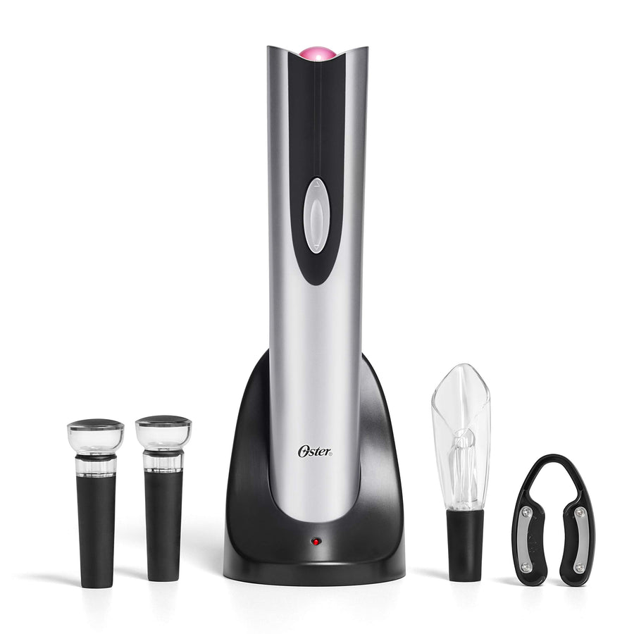 - Original Electric Wine Bottle Openers – Electric Wine Opener, Foil Cutter, Wine Pourer and Vacuum Wine Stoppers with CorkScrew and Charging Base, Black by Oster