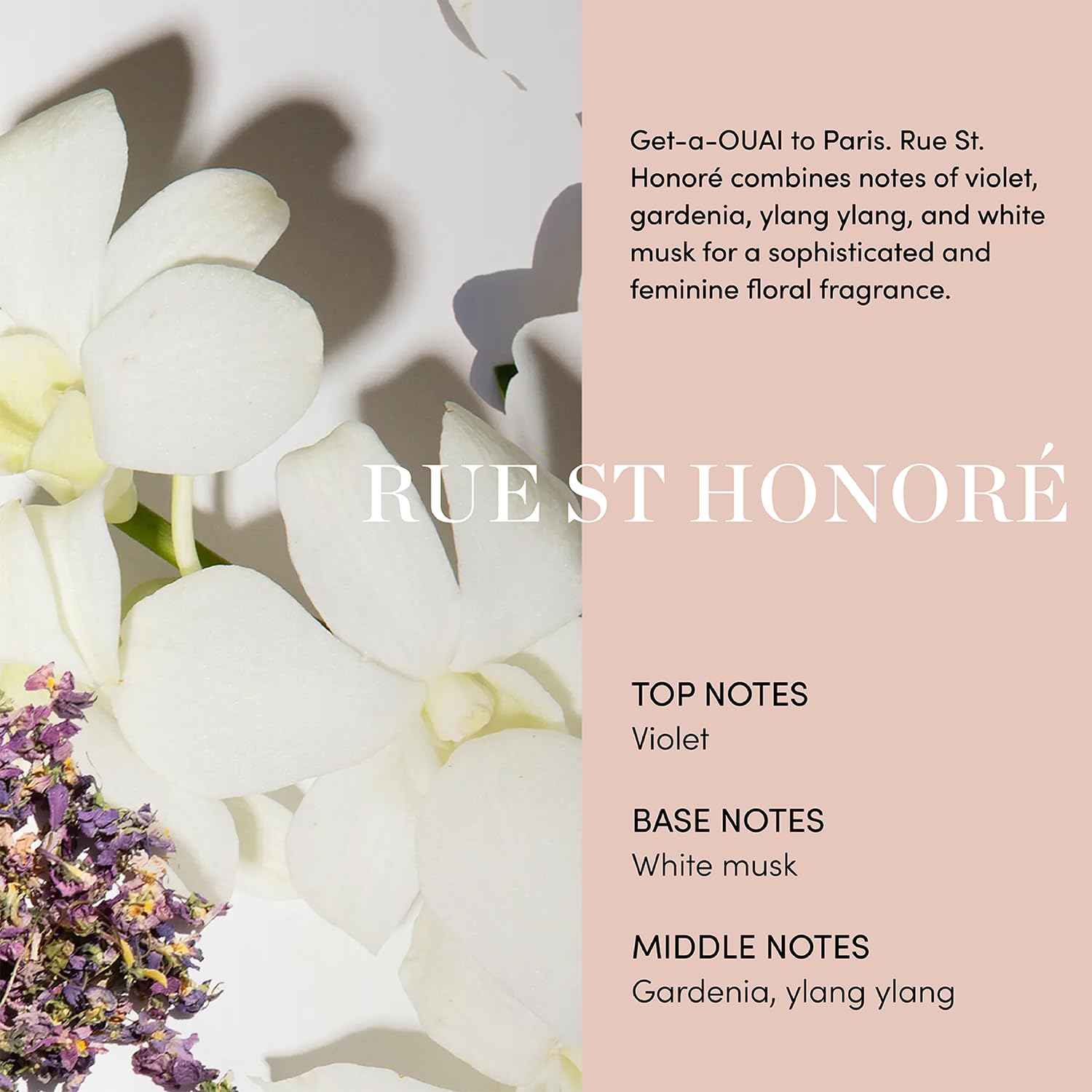 Get-a-OUAI to Paris. Rue St. Honore´ combines notes of violet, gardenia, ylang ylang, and white musk for a sophisticated and feminine floral fragrance.