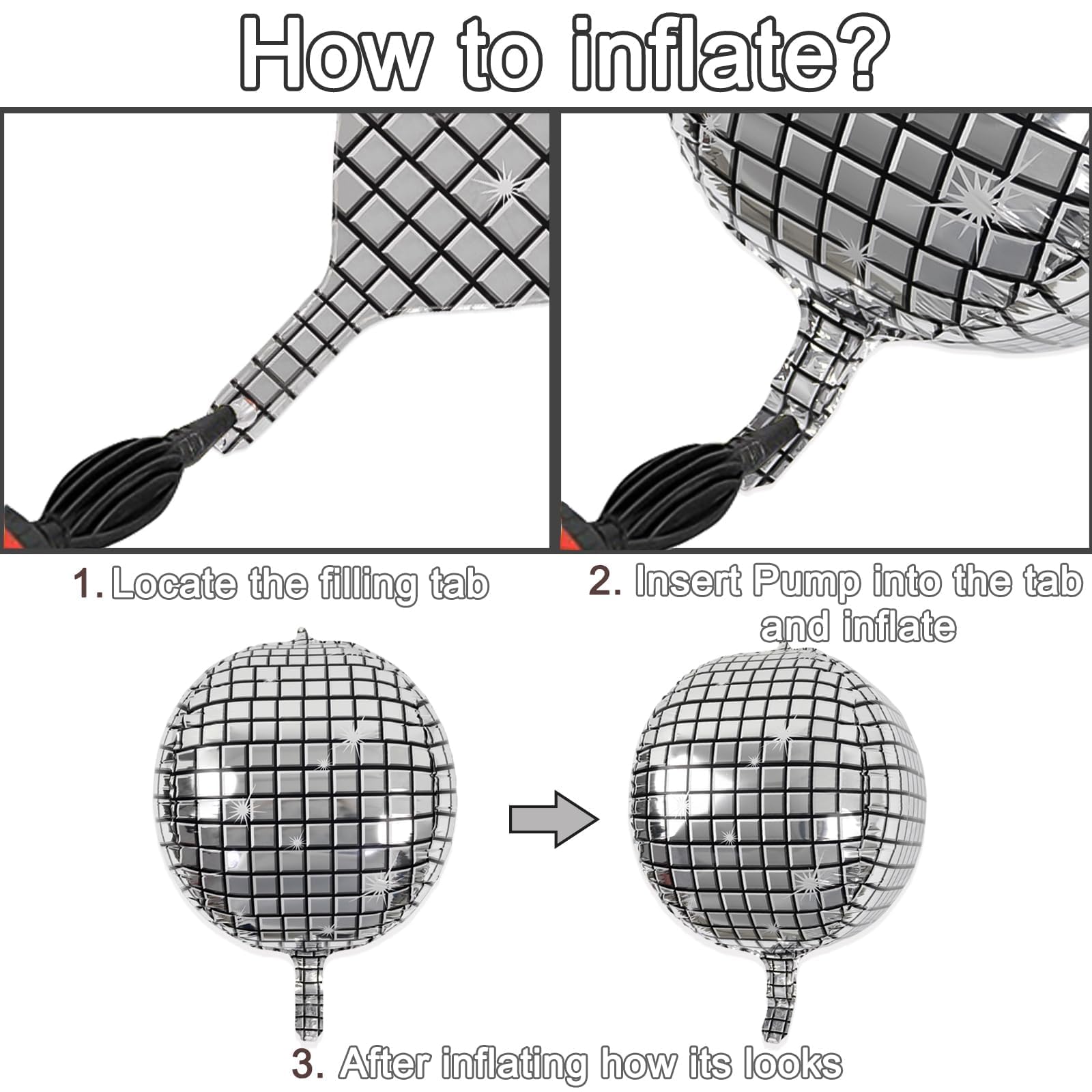 - Easy-Breezy Setup: These disco balloons are a breeze to use! Simply locate the filling tab, insert a pump or straw, and fill them with air. They're self-sealing, so no need to fuss with tying knots just inflate and let the party begin. Remember to deflate and save them for future parties or event decorations.