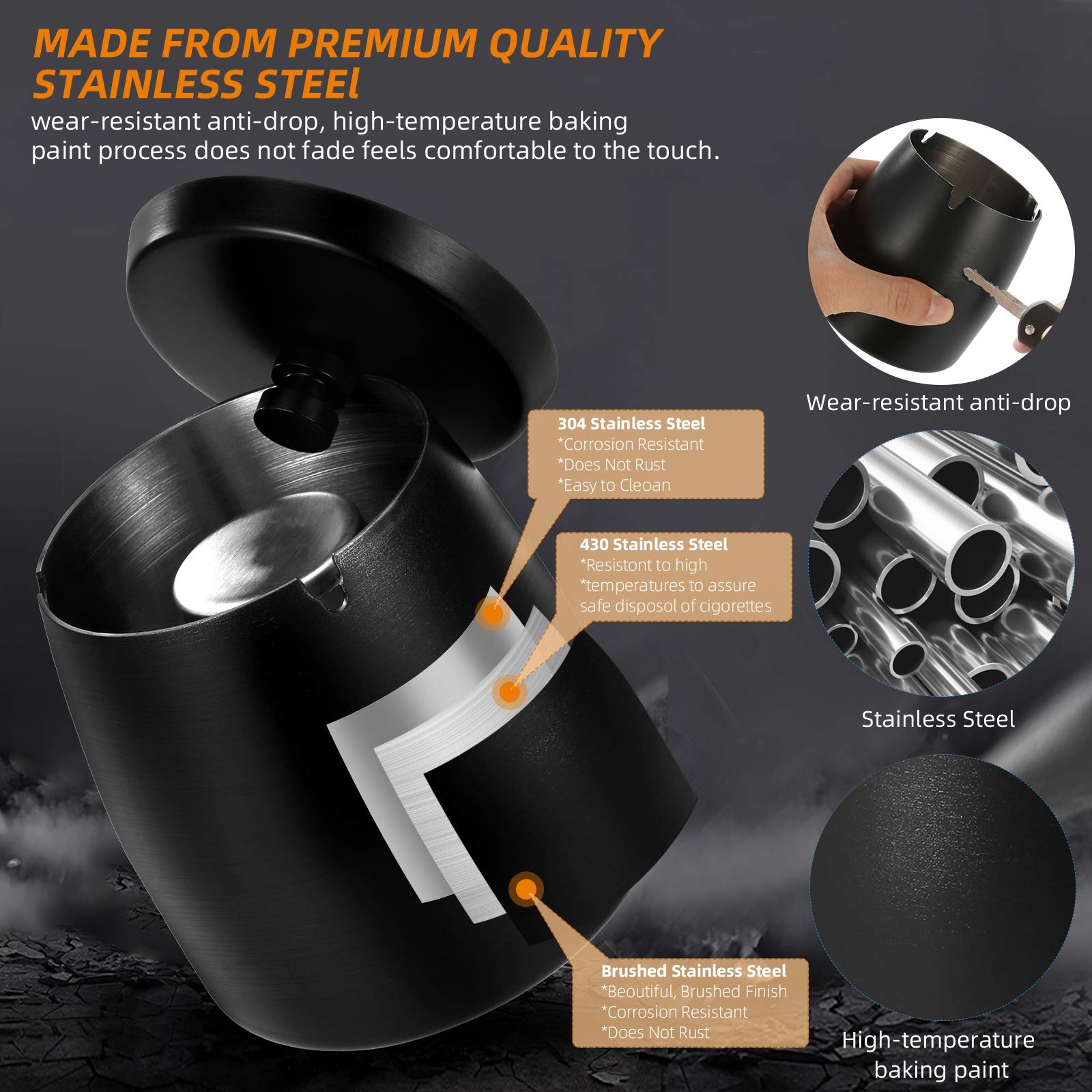 - Premium quality -- Windproof outdoor ashtray is made of heavy-duty, high-quality stainless steel, never deform, windproof and rainproof.