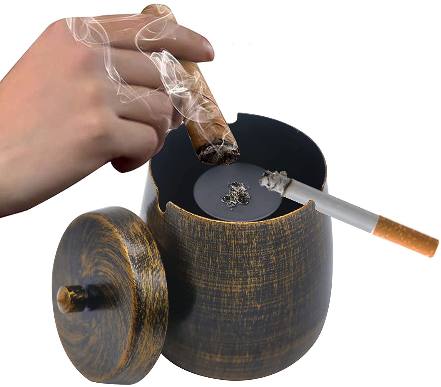 - Original Ashtrays – Outdoor Ashtray with Lid,Smokeless Iron Ash Tray,Odorless Car Ashtrays,Smell Proof Windproof Ashtrays for Outside Patio Home Office Tableto(large) by Fmangbl