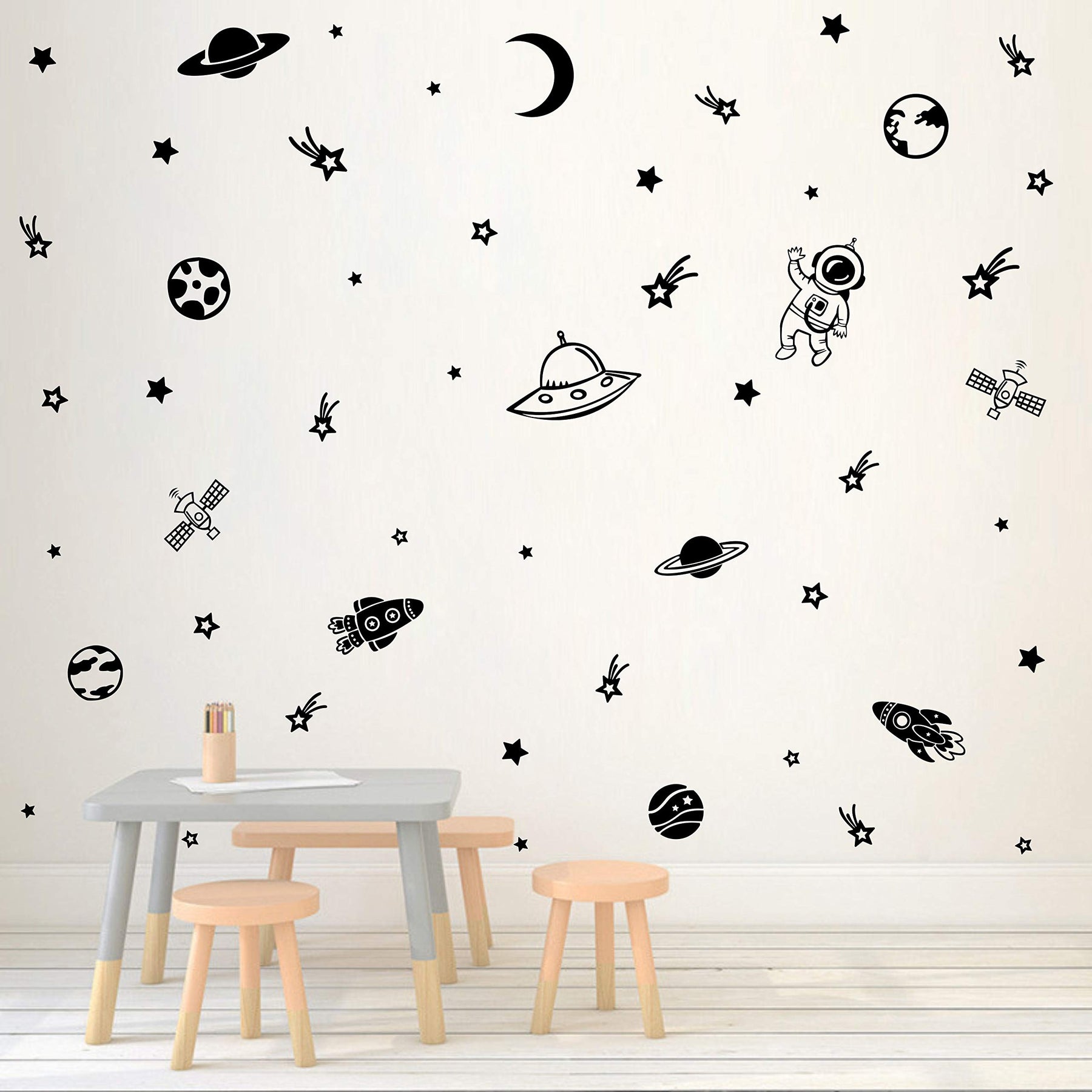 - Original – Outer Space Wall Decals for Boys Bedroom Decoration Rockets Planets Stars Wall Stickers Removable Wall Decor for Baby Kids Room (33) (Black) by DDK