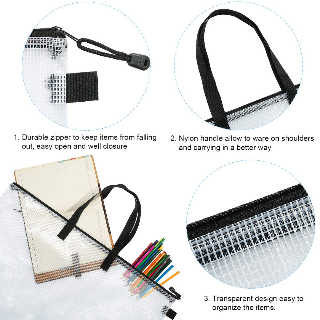 - Package included: come with 3 pieces transparent art portfolio bags with durable zipper and carrying straps, transparent design are easy to organize the items