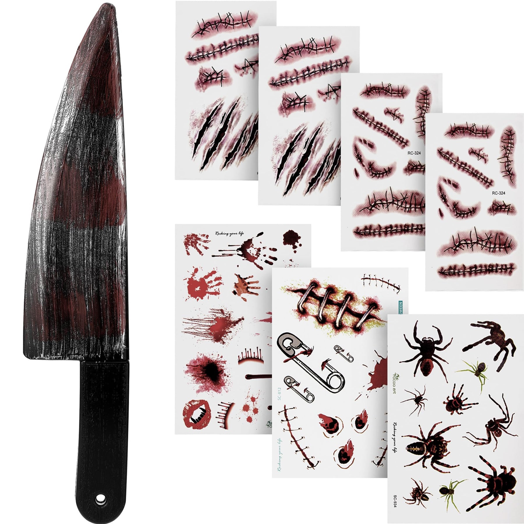 - Original Categories – Halloween Bloody Knife Fake Knife with 7 Sheets Scar Tattoo Stickers for Halloween Party Costume (Style B) by Outus