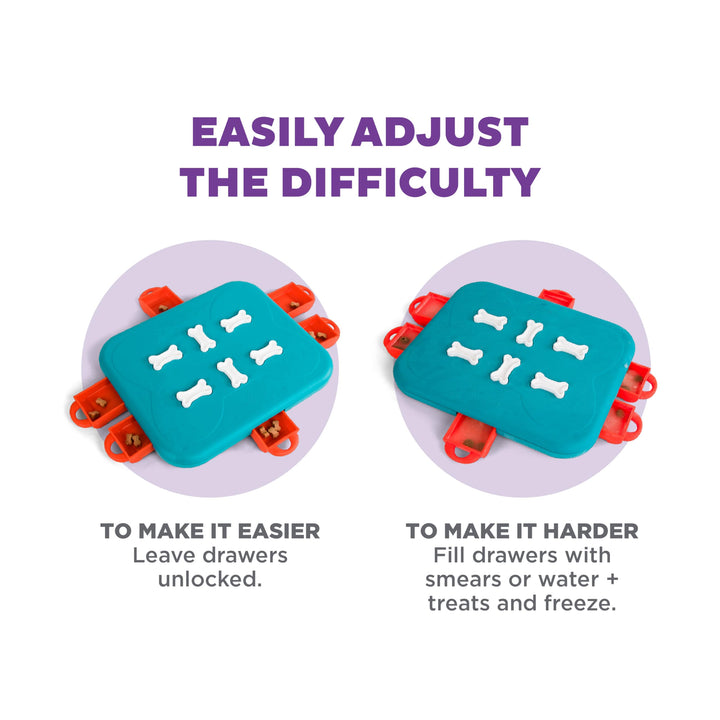 - Multiple ways to play – dogs turn bones to unlock drawers, then pull out the drawers to find hidden treats; check out our Tips and Tricks for ways to make the game easier or harder for your pet