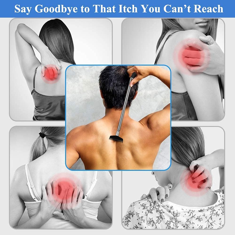 - OVERSIZED BACK SCRATCHER - Stainless steel back scratcher with telescoping handle, 8.07 inch retracted, and 31.5 inches when fully extended. The widen claw is not too sharp and eliminate your itch greatly, easily scratch those hard to reach spots, and relieve stress.