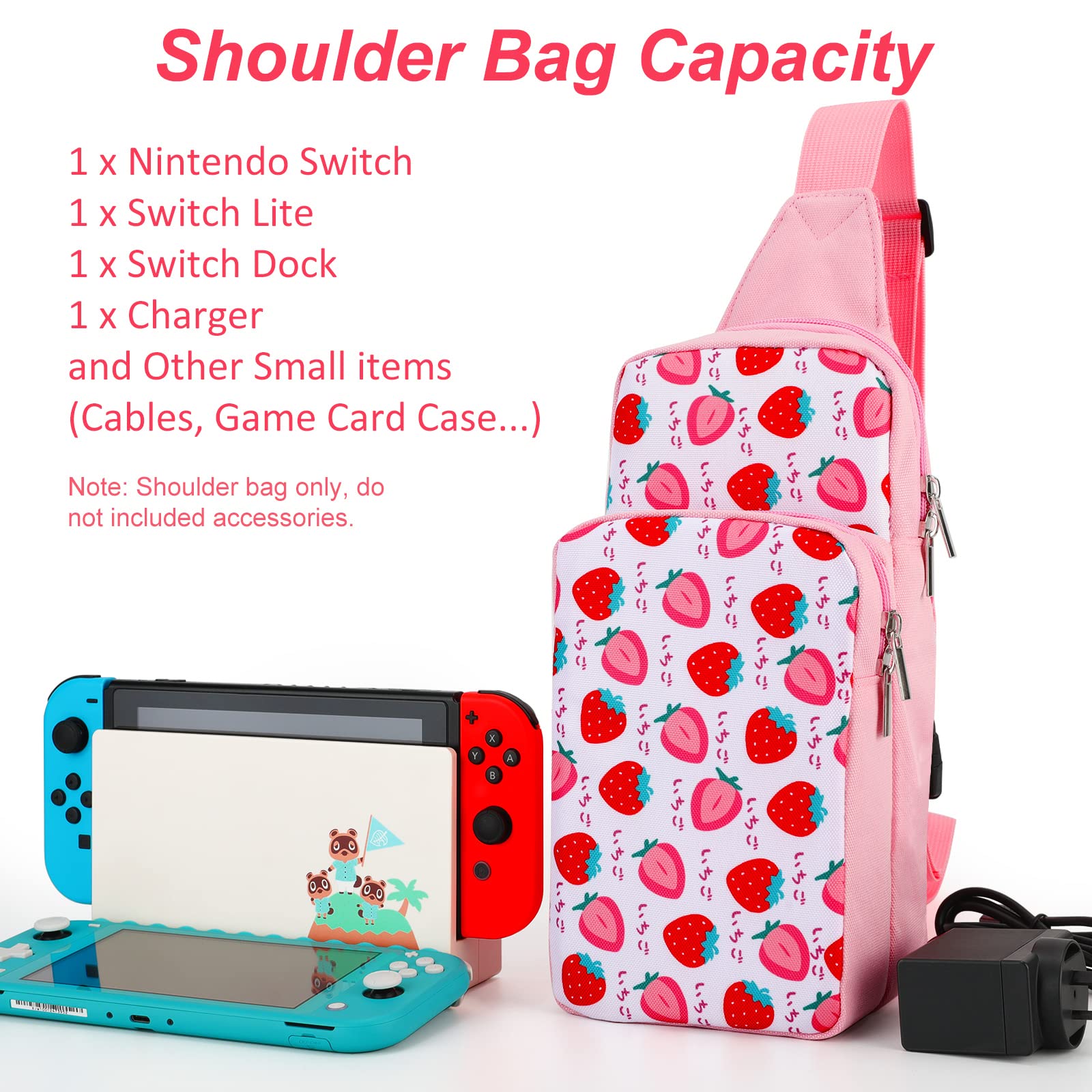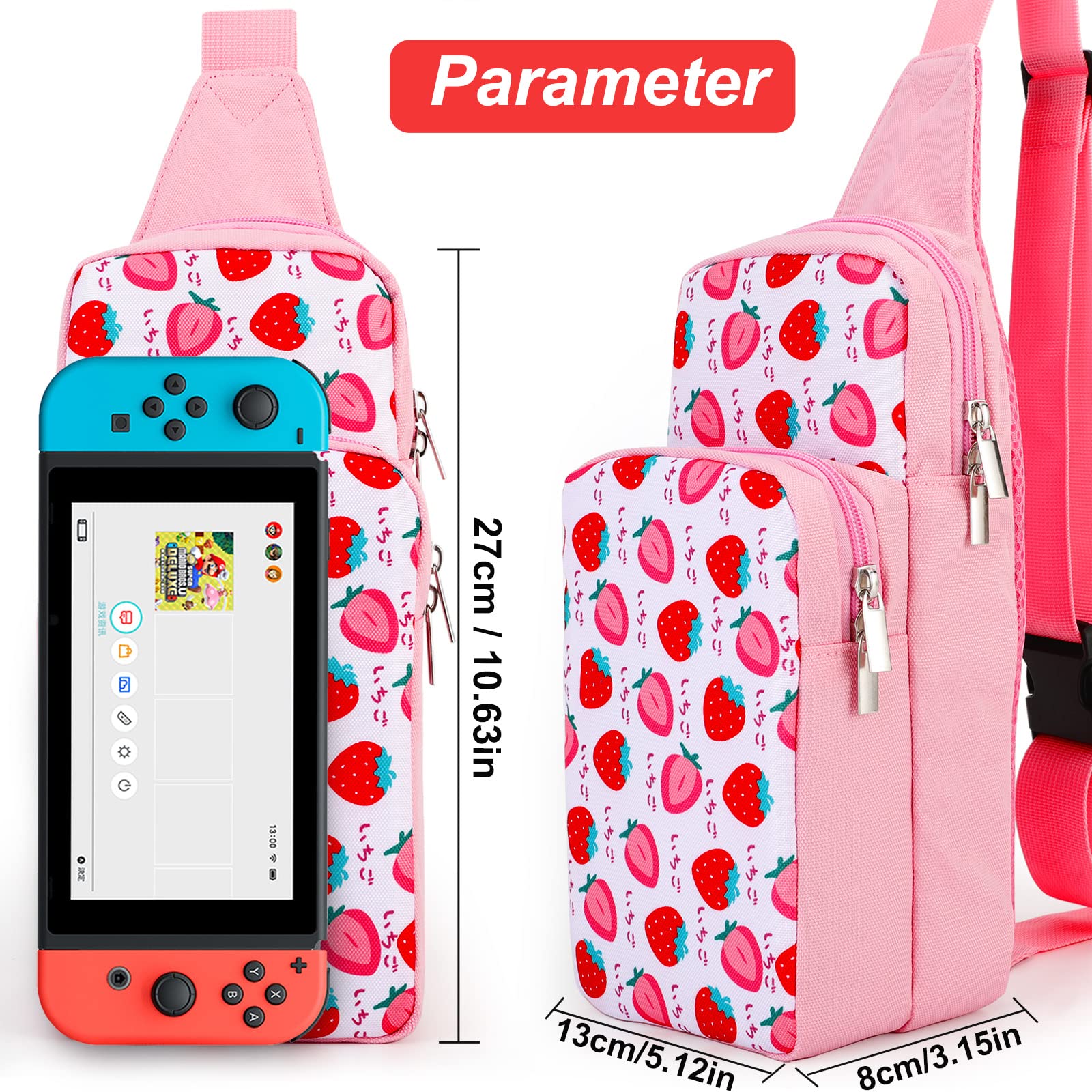 - Original Case & Storage Sets – Cute Travel Bag for Nintendo Switch/ Lite / OLED, Portable Small Pink Strawberry Shoulder Carrying Storage Backpack for NS Consolo, Charging Dock, Joy-Cons, Accessories for Women Grils by Owngen
