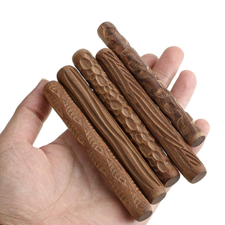 - Original Ceramic & Pottery Tools – Set of 5 Clay Modeling Pattern Rollers Kit, Fish Leaves Cobblestone Ripple Wood Grain Pattern 4.7 in Clay Rolling Pin Textured Hand Roller Wooden Handle Pottery Tools Set by OwnMy