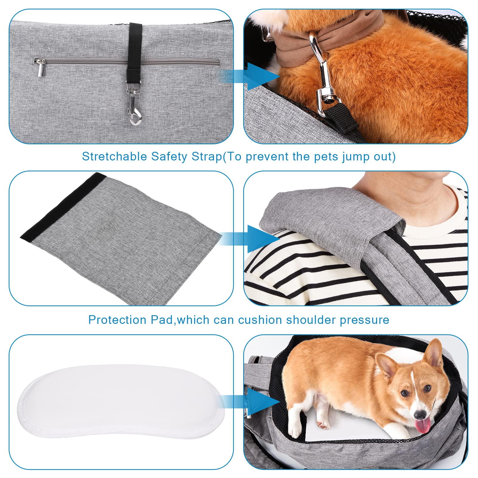 - Safety Design & Maintenance - This pet sling carrier includes a collar hook that links to pet's collar and prevents them from jumping of the dog carrier bag. great for travel, walking, shopping and outdoor activities. This dog carrier bag is machine washable. And it's easy to storage, you can fold it up, it will not take up much space.