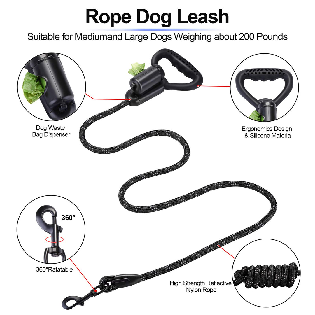 - Original Basic Leashes – Reflective Black Dog Leash & Collar Set, 5 ft Dog Leash for Heavy Duty with Waste Bag Dispenser & Adjustable Dog Collar for Large & Medium Dogs, Suitable for Training, Hiking, Walking & More by Ownpets