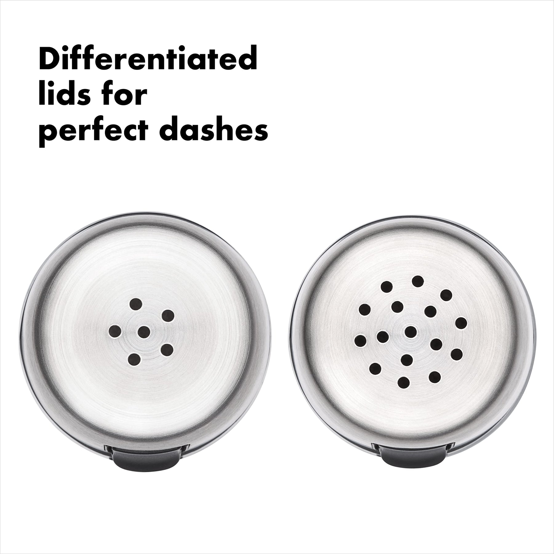 - Each shaker has different hole patterns for ideal dispensing of salt or pepper